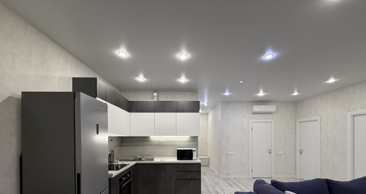 Квартира выполнена в дизайнерском стиле и полностью готова к комфортному проживанию. Просторная кухня площадью 20 кв. м оборудована всей необходимой техникой: холодильник, посудомоечная машина и стиральная машина. В каждой комнате есть мебель, а кондиционер и телевизор создадут дополнительный уют. В квартире два совмещенных санузла: один с ванной, другой с душевой кабиной, что очень удобно для семьи или компании друзей.