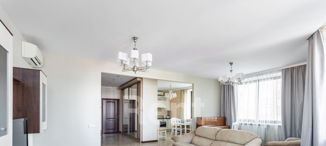 БЕЗ КОМИССИИ ДЛЯ АРЕНДАТОРА. Предлагается комфортабельная трехкомнатная квартира в ЖК бизнес-класса "Трианон". Планировка включает просторную гостиную и две спальни с полным комплектом качественной мебели. Белоснежный кухонный гарнитур оснащен современной встроенной техникой, в том числе посудомоечной машиной. Установлены сплит-системы и водонагреватель. Для поддержания порядка предусмотрены гардеробная и кладовая.