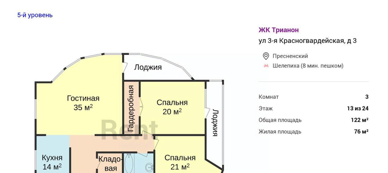 3-к кв. Москва 3-я Красногвардейская ул., 3 (122.0 м²)