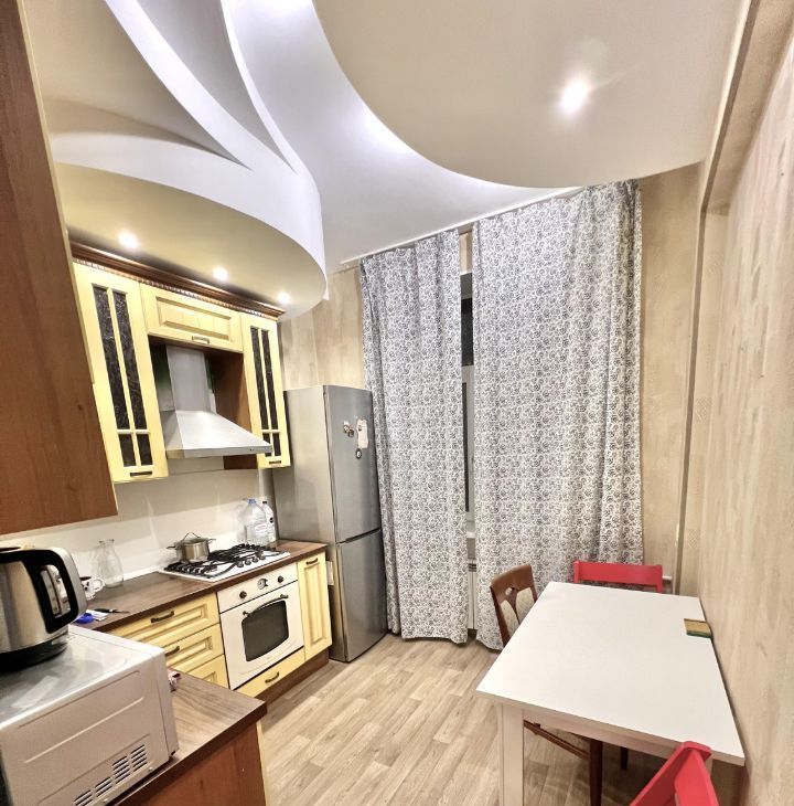 В квартире евроремонт в светлых тонах. Просторные изолированные комнаты, где есть вся необходимая мебель, много пространства для хранения вещей. Кухня оборудована мебелью и современной устроеной техникой, включая духовую печень и микроволновку. В гостиной установлен кондиционер и телевизор. В ванной комнате — душевая кабина и ванна, что добавляет удобства и практичность.