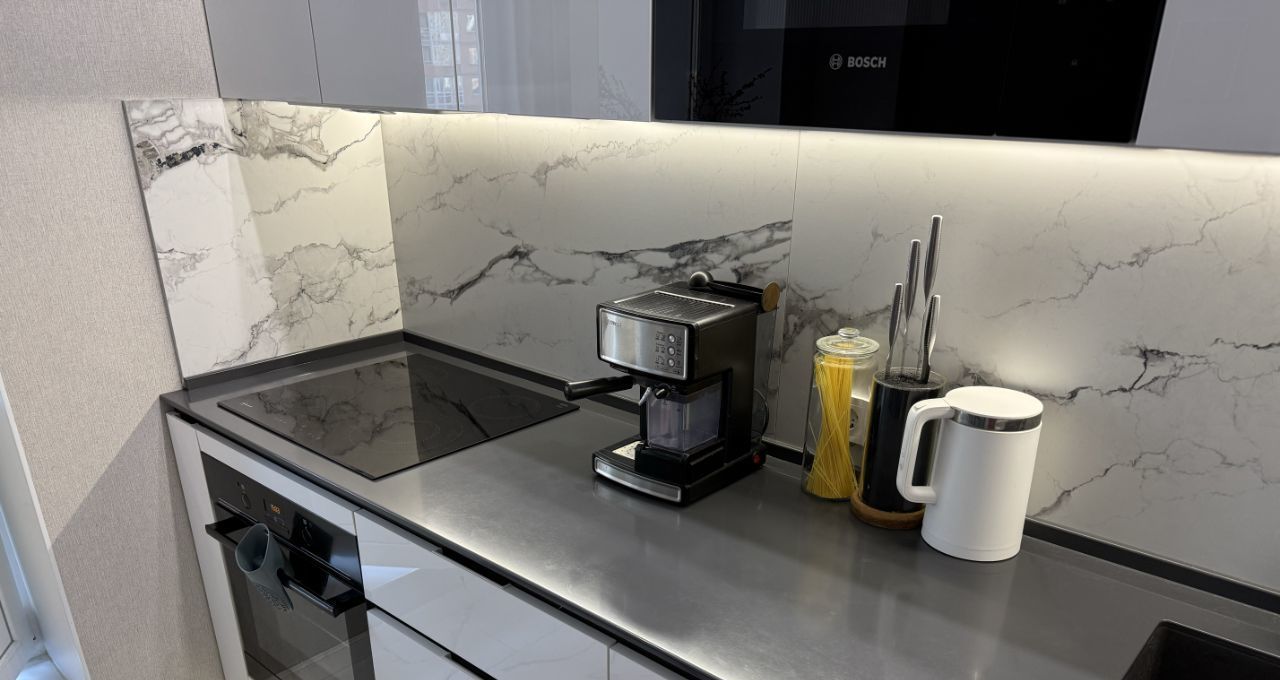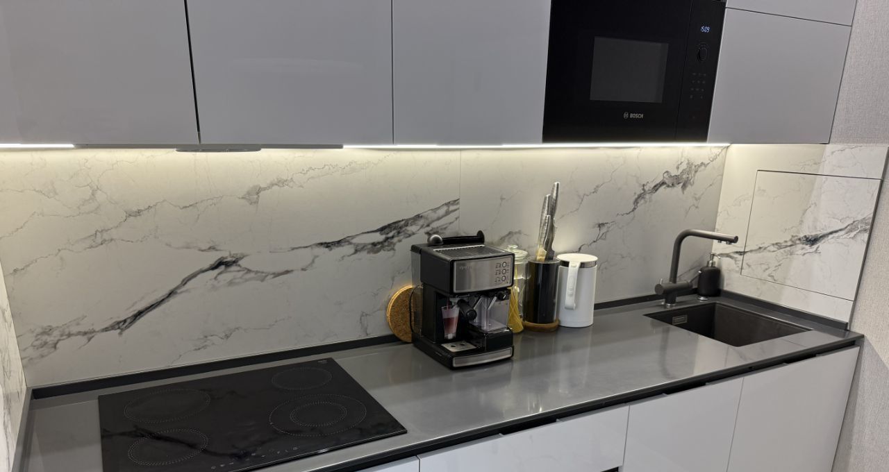 — Техника от ведущих мировых брендов (Neff, Bosch, Samsung, Xiaomi, Electrolux). На кухне установлен мощный измельчитель отходов Bone Crusher — просто чудо, которое позволяет не скапливать в мусорном ведре пищевые отходы, а смывать их в раковину, включая даже куриные кости.