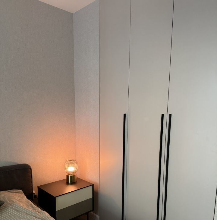 — Высокого качества материалы и фурнитура, вместительные шкафы в потолок в каждой комнате.