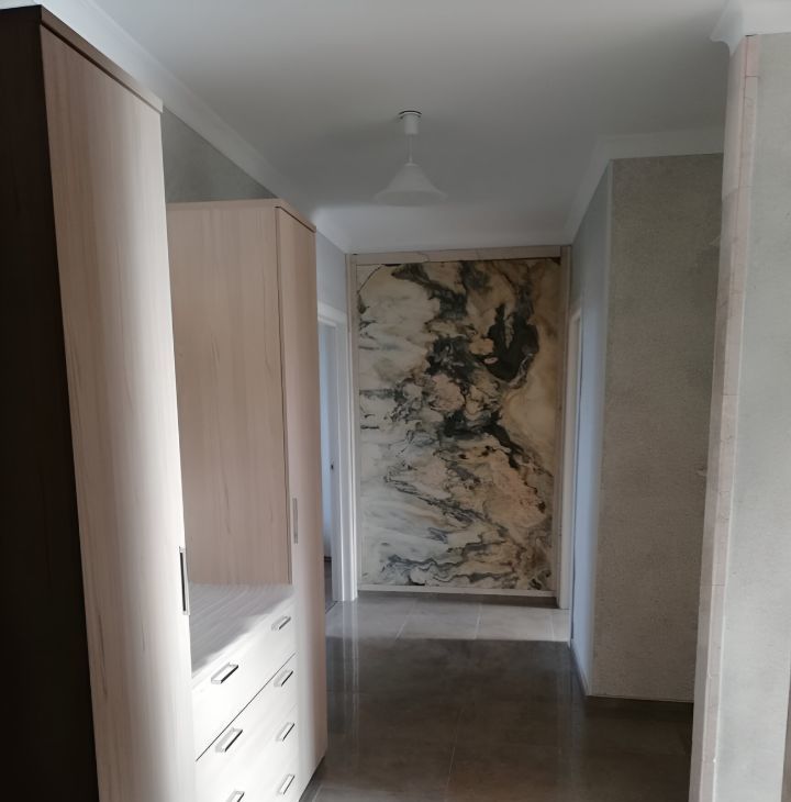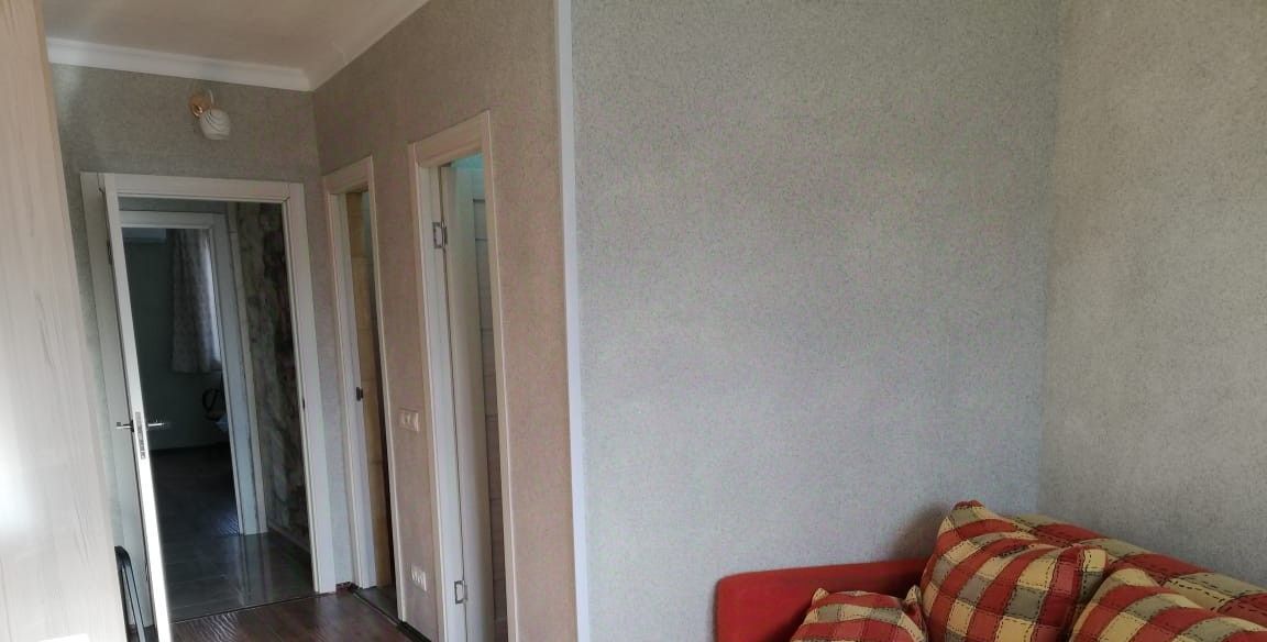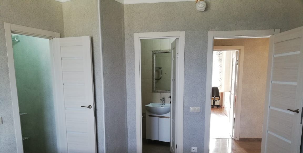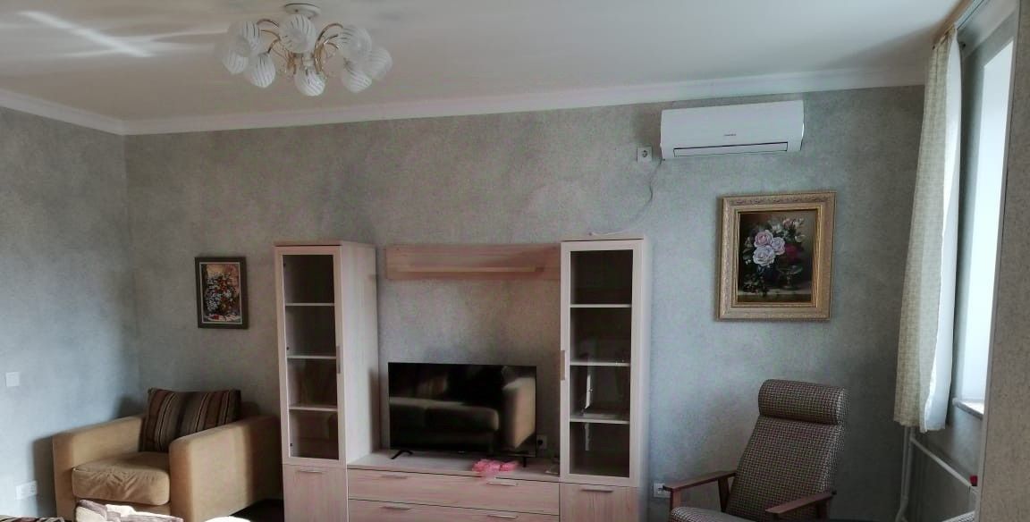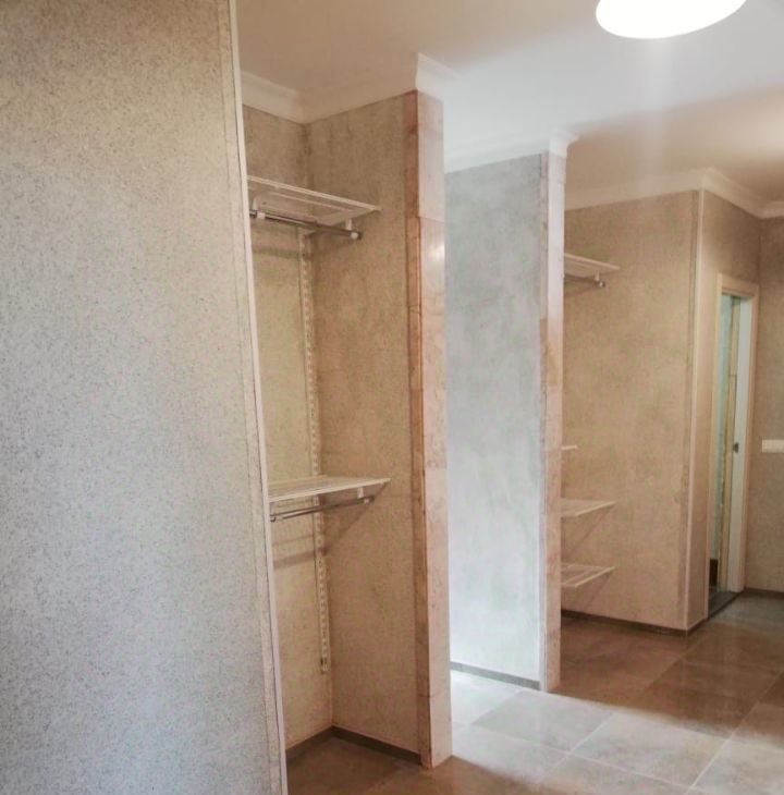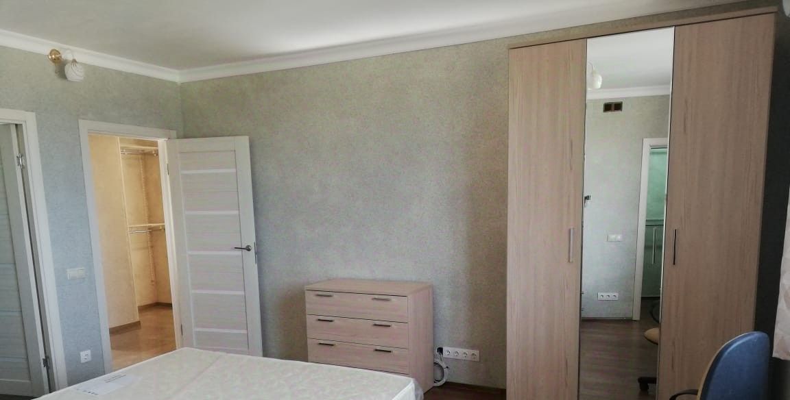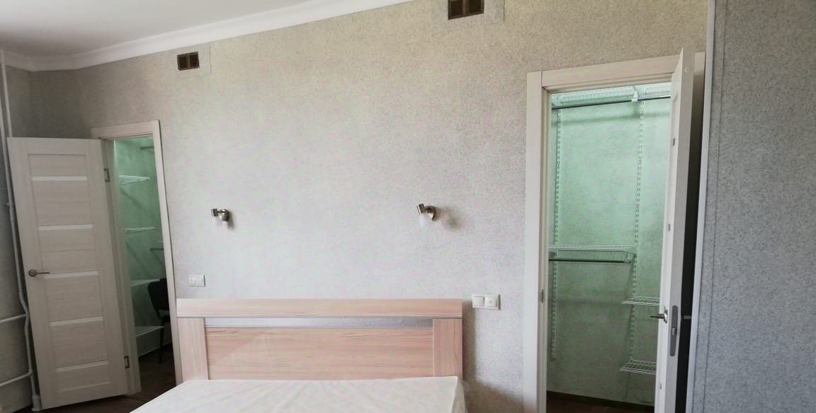 Косметический ремонт. Натуральные, качественные материалы: стены - мраморная крошка, пол - ламинат, плитка, подокойники из мрамора. Большая спальня, 22 метра с 2-я гардеробными, большими комнатами, отдельным совмещенным санузлом с душкабиной. В комнате : 2-х спальная кровать, шкаф, комод и т.д. Вторая спальня с гардеробной и санузлом. В ней стоит диван, рабочий стол с креслом, шкаф плательный. Комнаты просторные, светлые. В каждой комнате кондиционер. Гостиная совмещена с большой кухней: встроенный кухонный гарнитур, столешница и фартук из гранита, пол - плитка. Хорошая бытовая техника, посудомоечная машина, большой холодильник. Просторная, застекленная лоджия, пол плитка. И еще один совмещенный санузел 8 метров с ванной. Хорошая плитка в санузлах. Большая прихожая с набором мебели и множеством мест для хранения. Пол- качественная плитка.