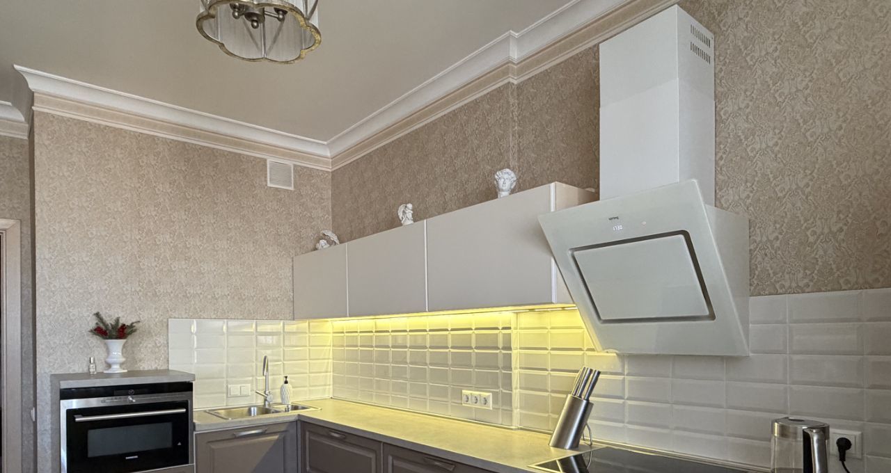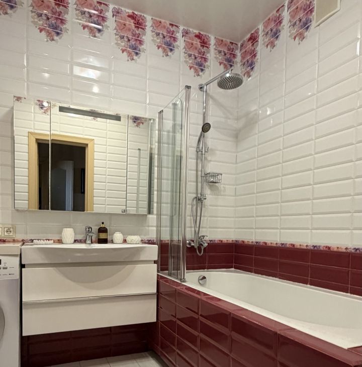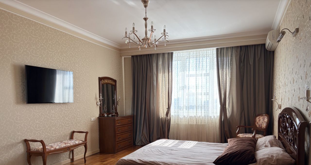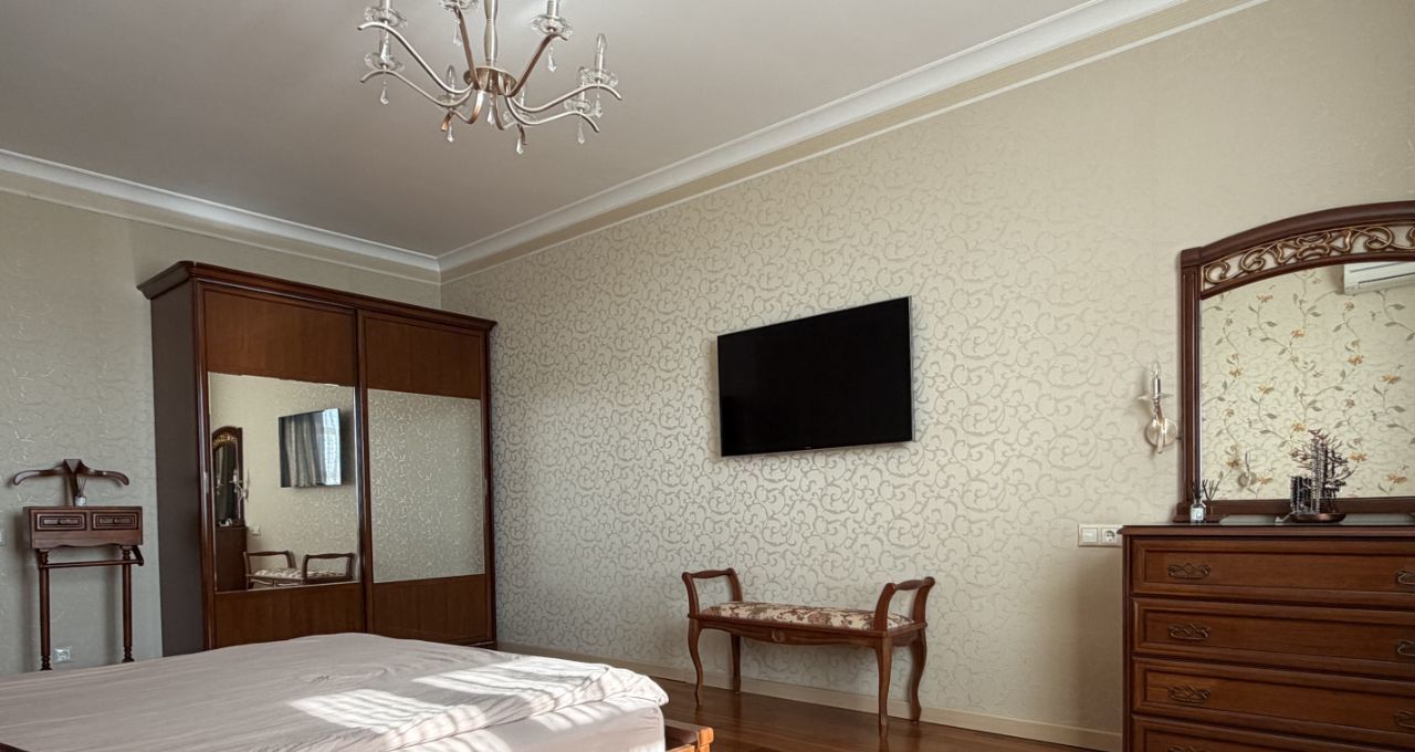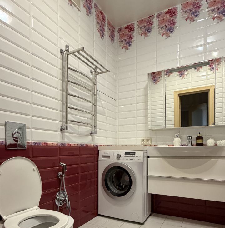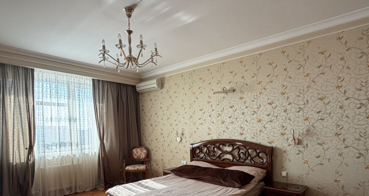 Квартира оформлена в дизайнерском стиле: каждая деталь интерьера продумана до мелочей, мебель выполнена из натурального дерева. Просторная кухня с немецкой техникой SIEMENS, площадью 15 кв. м станет идеальным местом для семейных ужинов и встреч с друзьями. В квартире есть один совмещенный и один отдельный санузел, что удобно для большой семьи. Ванная комната оборудована сантехникой DAMIXA. Также есть балкон, где можно насладиться утренним кофе или вечерними закатами.