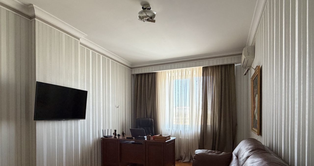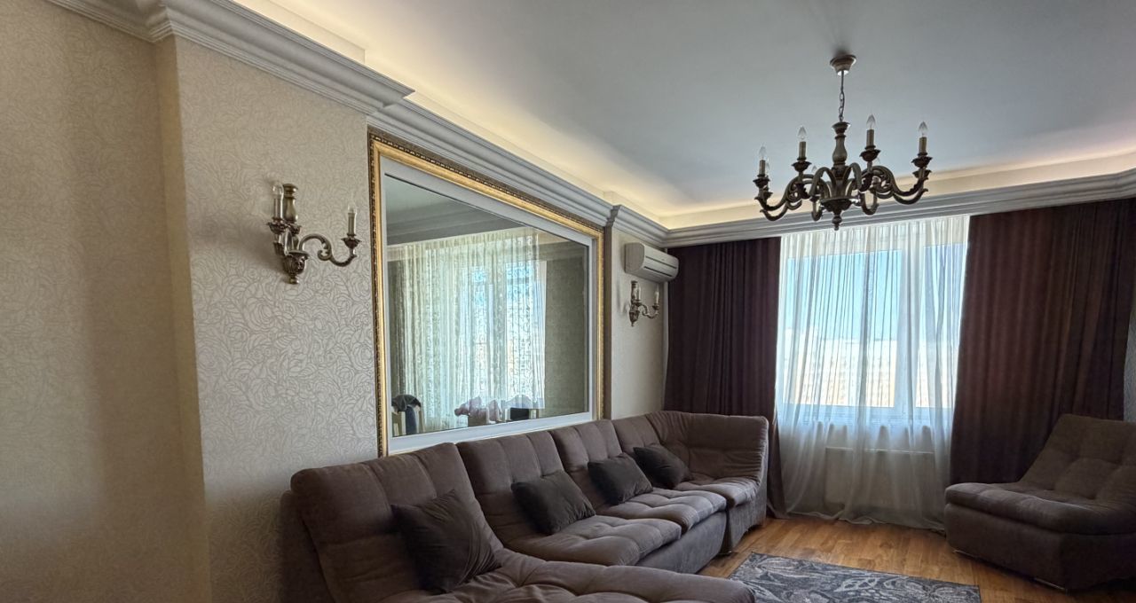 Продается просторная 3-комнатная квартира площадью 116 кв. м с удобной функциональной планировкой, расположенная на 14-м этаже 15-этажного кирпичного дома, построенного в 2012 году. Просторные светлые комнаты с высокими потолками (3 метра). Из окон открывается вид как на улицу, так и во двор, поэтому квартира всегда будет наполнена естественным светом и свежим воздухом.