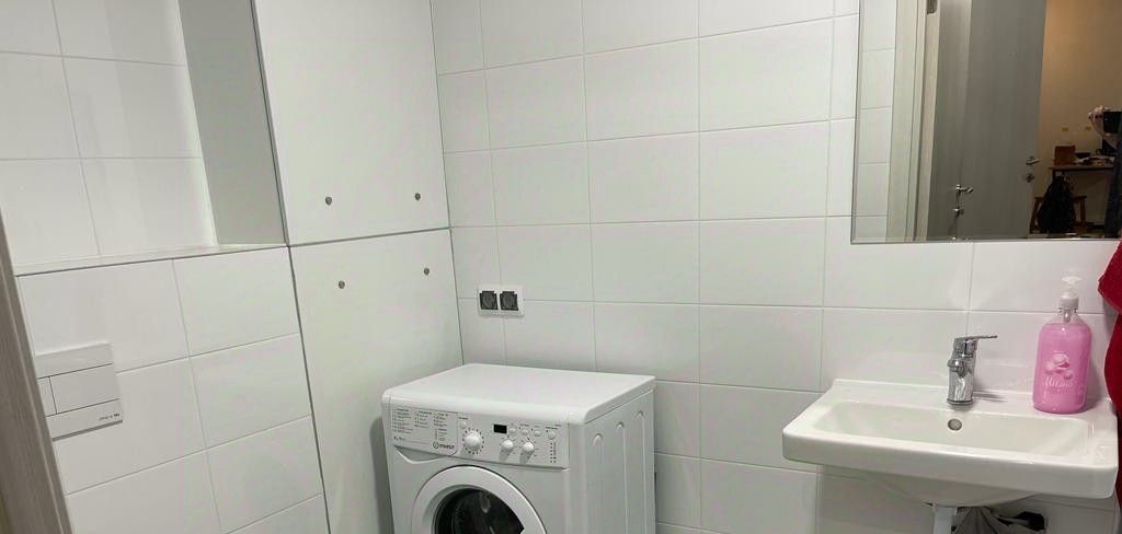 Два санузла - стиральная машина, зеркало, большая ванна. Также имеется сушилка для белья.