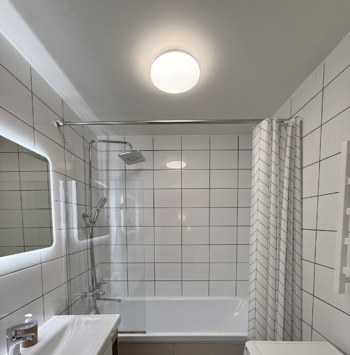 Раздельный санузел. В туалете гигиенический душ, в ванной стиральная машина LG с сушкой. Установлено зеркало с подсветкой и полотенцесушитель.