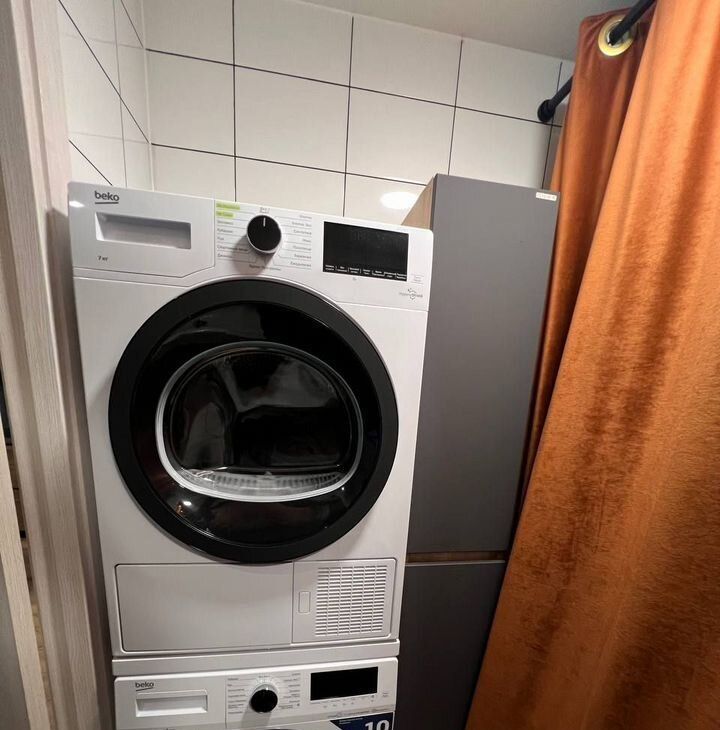 Квартира укомплектована современной техникой: посудомоечная машина с функцией сушки посуды и отдельная сушильная машина для белья, инверторный духовой шкаф, индукционная варочная панель. В каждой комнате - вместительные шкафы для хранения.