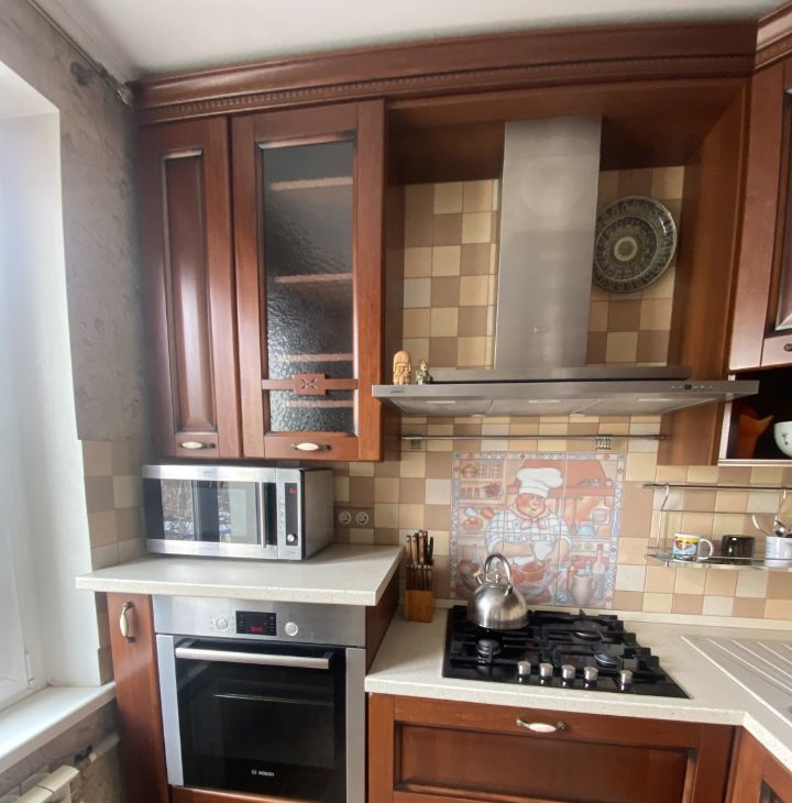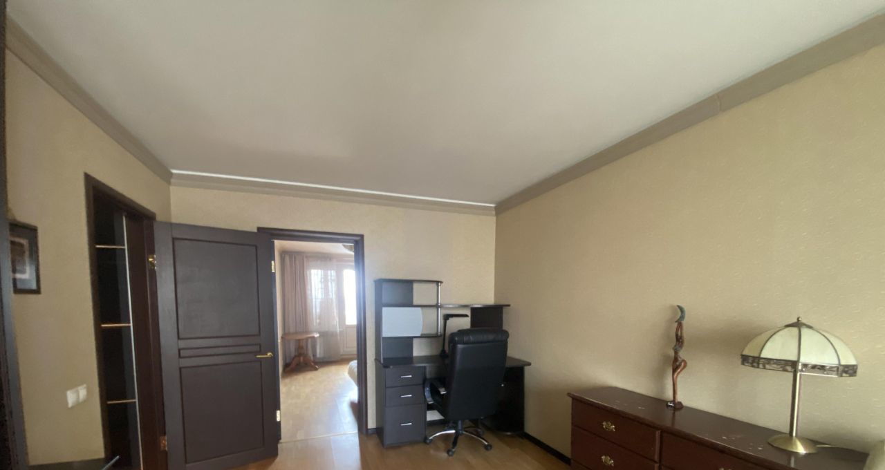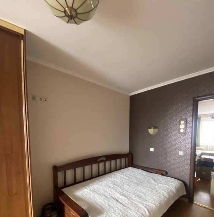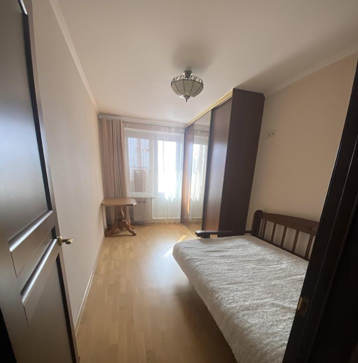 Уютная светлая трехкомнатная квартира. Большая комната, спальня с балконом, столовая. Тихий двор, рядом школа и детский сад, магазины.