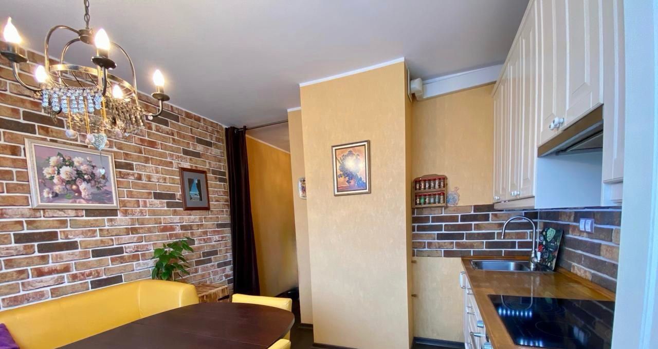 Пол в комнатах - дубовый паркет, в коридоре и кухне ламинат, в с/у керамогранит. Стена и фартук на кухне отделаны натуральным немецким клинкером.