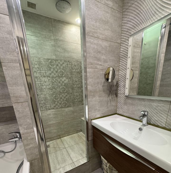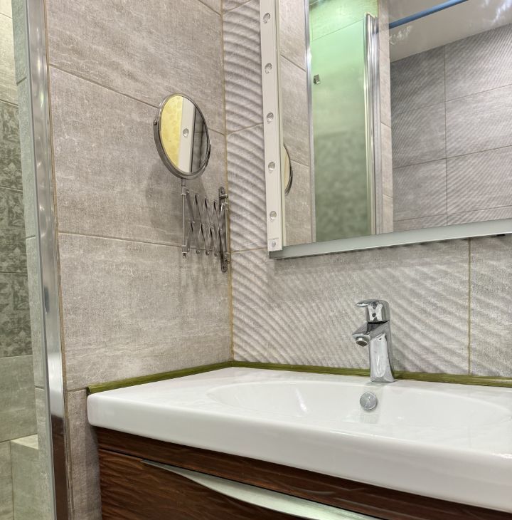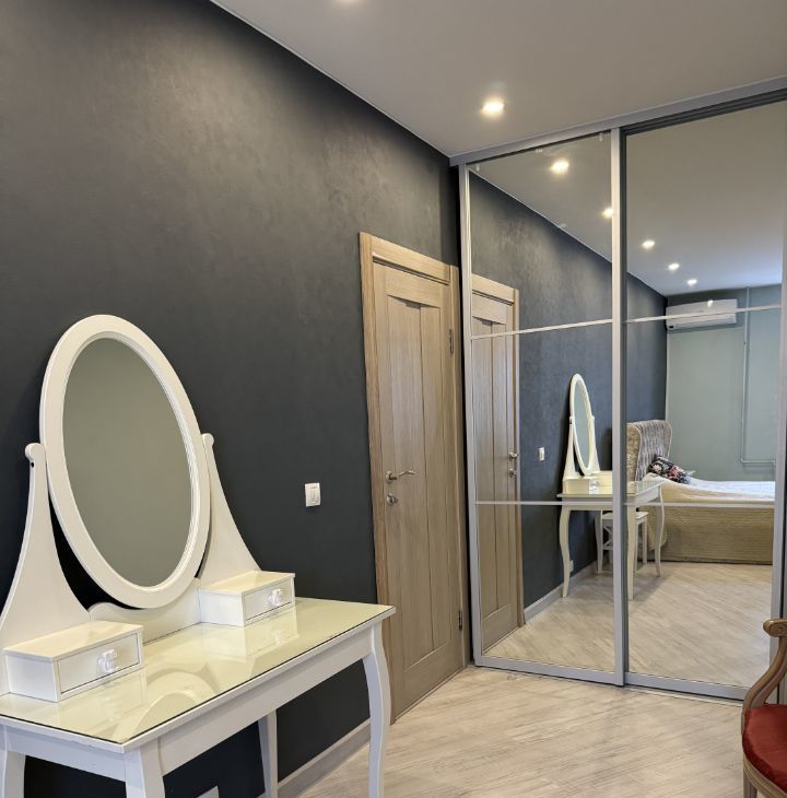 В квартире сделан дизайнерский ремонт, все комнаты обставлены мебелью. Недавно сделан косметический ремонт. Качественные материалы выглядят уютно и располагающе.