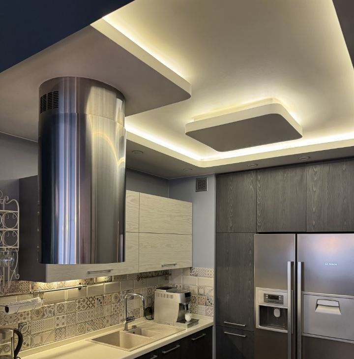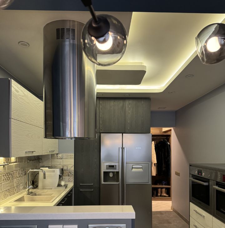 Просторная кухня имеет две зоны - для приготовления вкусных ужинов и для теплых встреч у камина.
