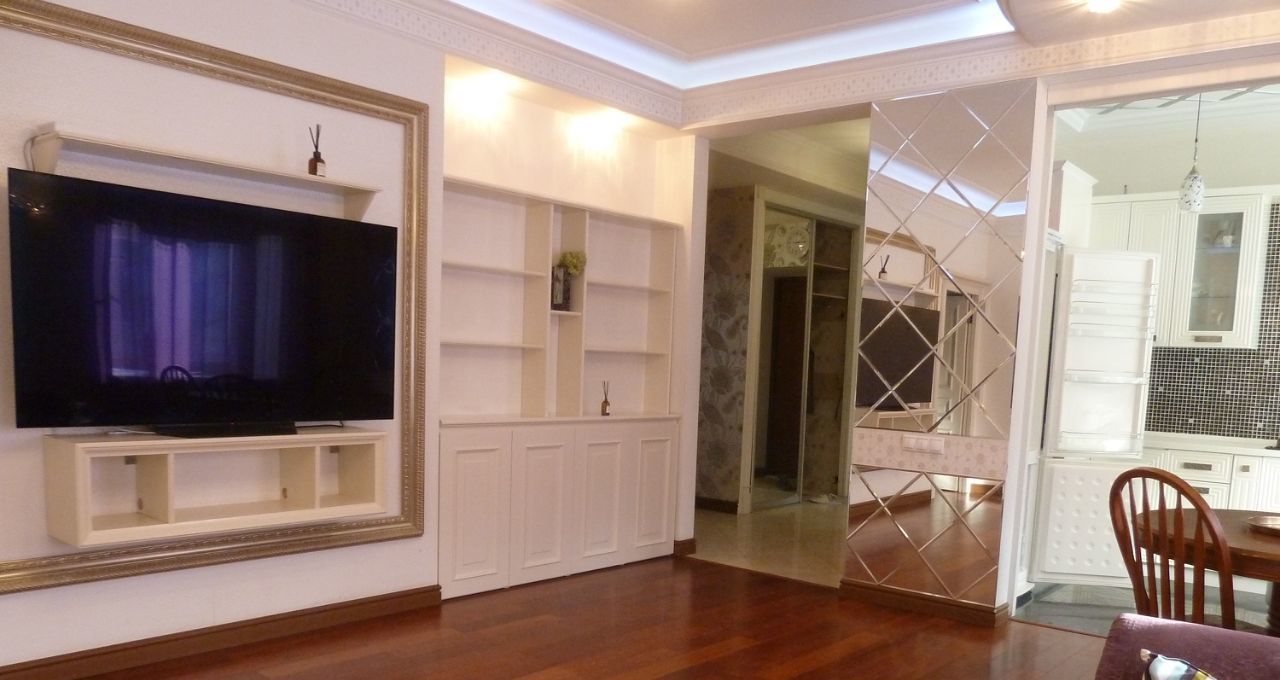 Квартира в аренду на длительный срок. Удобная планировка для комфортной жизни. Оборудована всем необходимым: встроенная бытовая техника, большой санузел, спальня, гостиная, кабинет или детская.