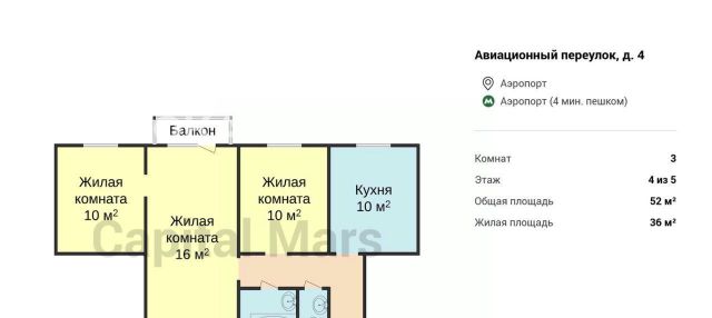 3-к кв. Москва Авиационный пер., 4 (52.0 м²)