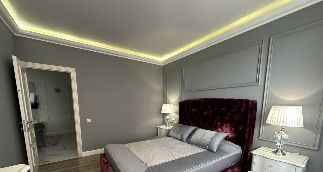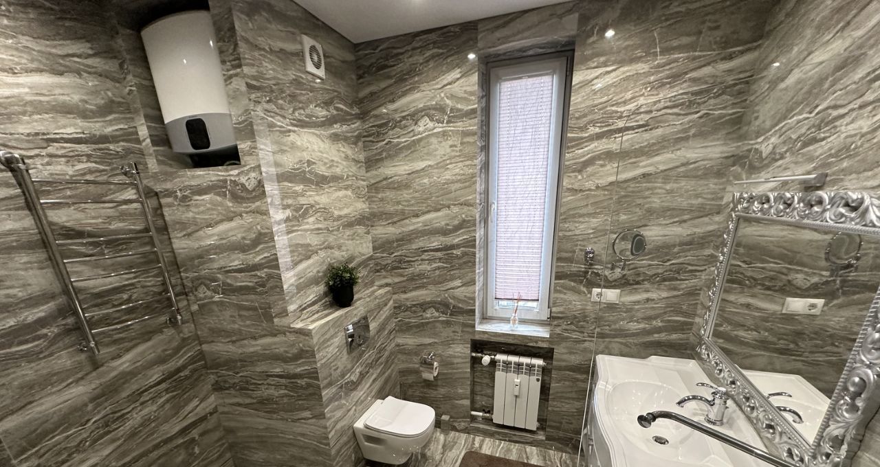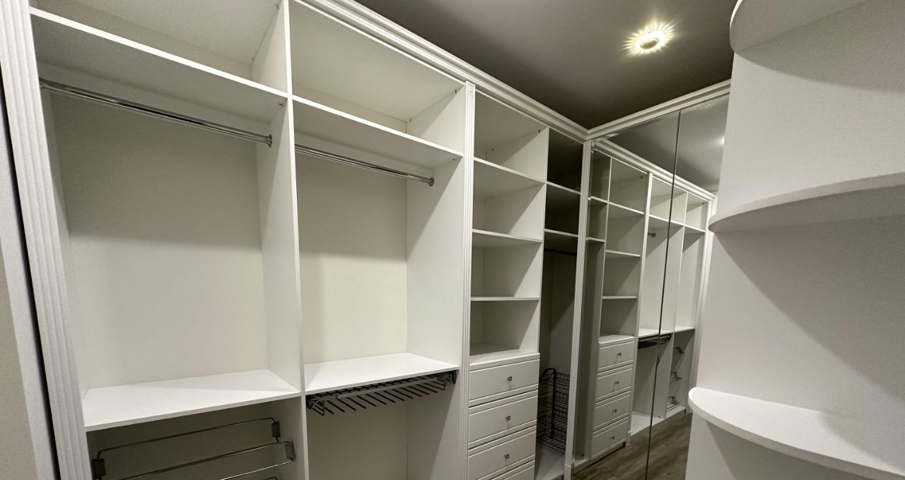 состоит из 2х комнат, кухни, гостиной, гардеробной, ванной комнаты.