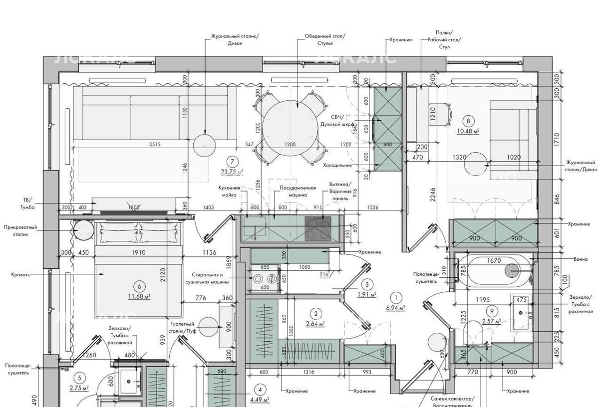 - отдельная постирочная,