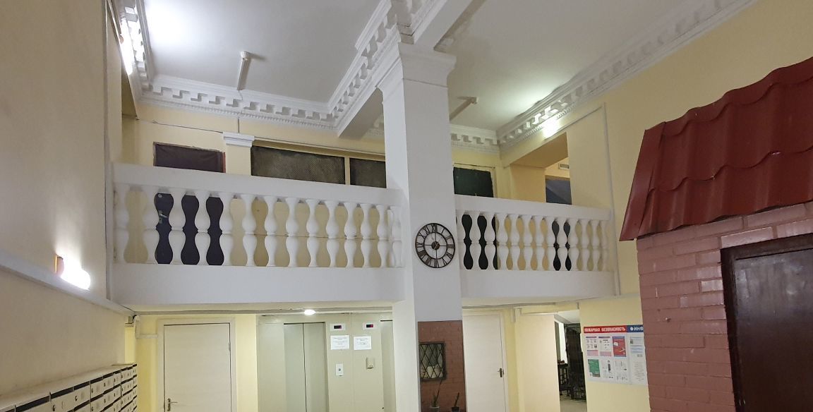 Продаётся квартира в шикарном доме - "сталинке" 1957 года постройки, с прекрасной входной группой, шикарным холлом, с консьержкой, с "башенками" на крыше. Без ступеней до лифтов. Два пассажирских лифта и два лестничных марша.