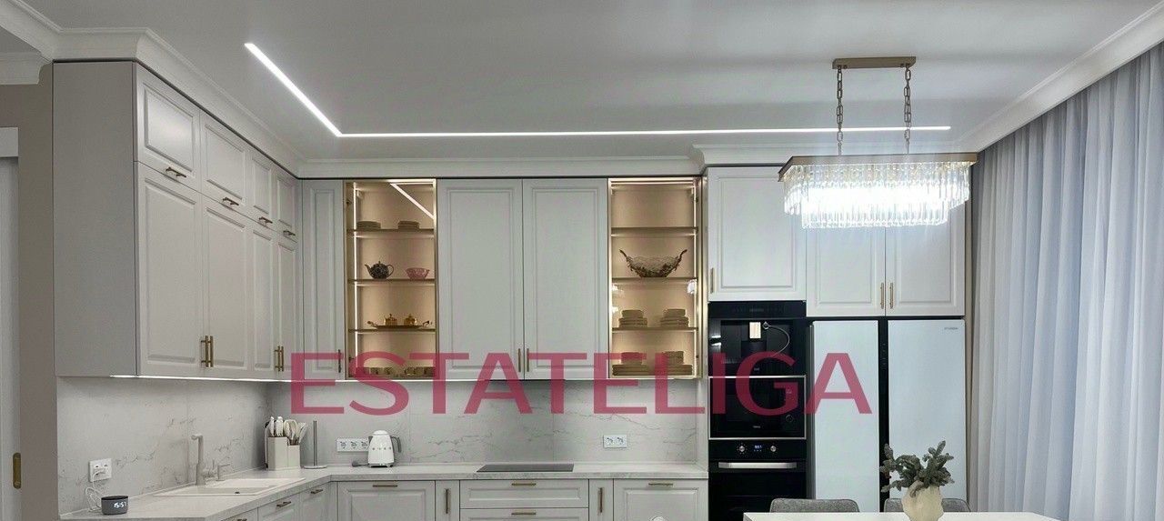 Квартира оборудована всей необходимой встроенной бытовой техникой известных брендов: посудомоечная машина, варочная панель, духовой шкаф, микроволновая печь, холодильник, вытяжка, три телевизора, стиральная машина с функцией сушки, электрический чайник, утюг, пылесос.