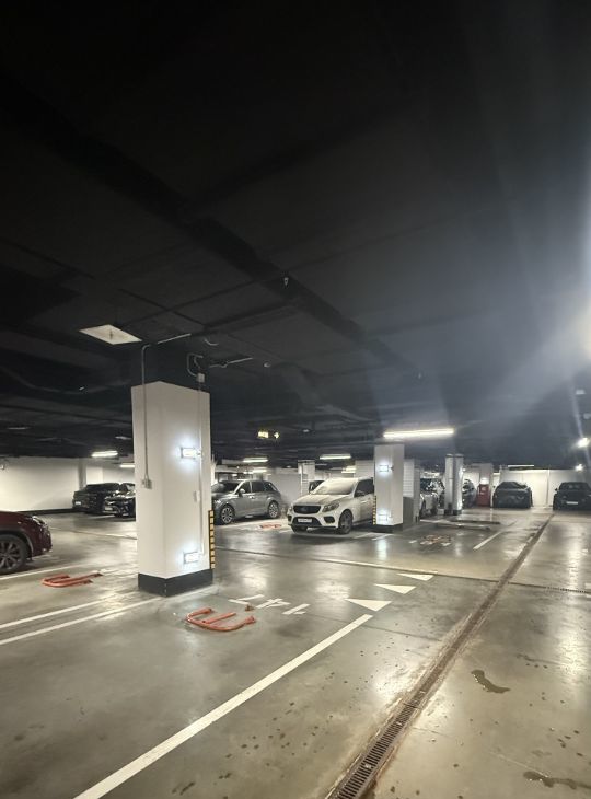 Подземная парковка - 1 этаж в 20 метров от входа шикарная и широкая.