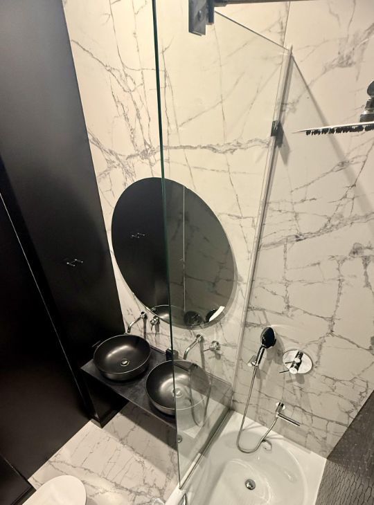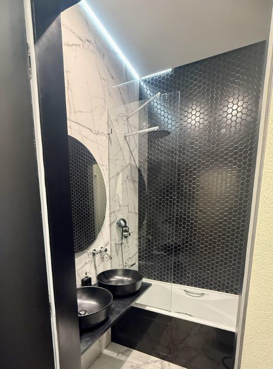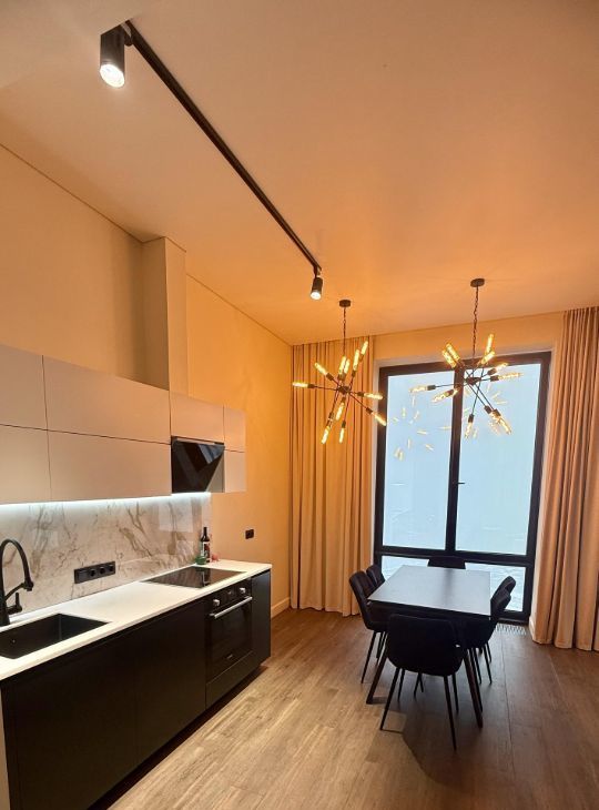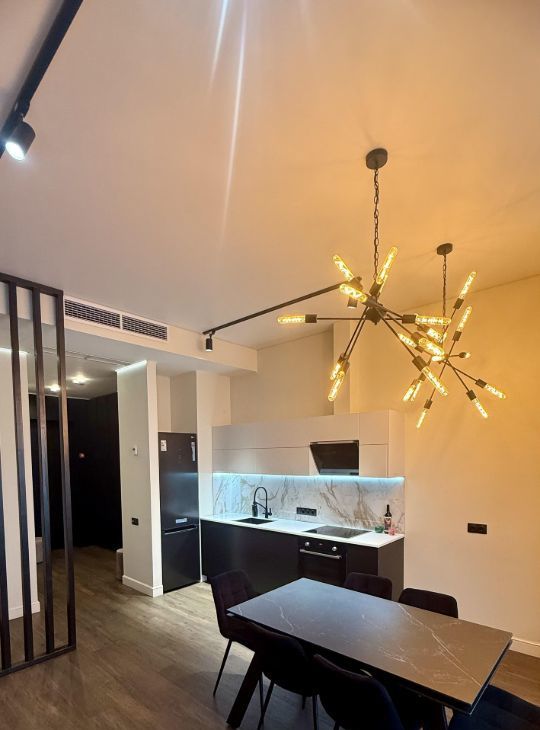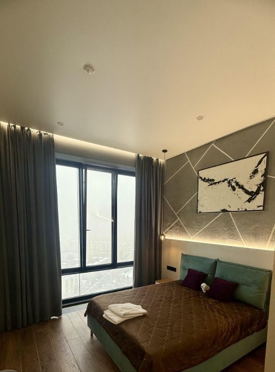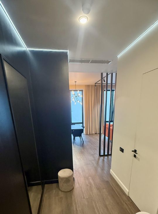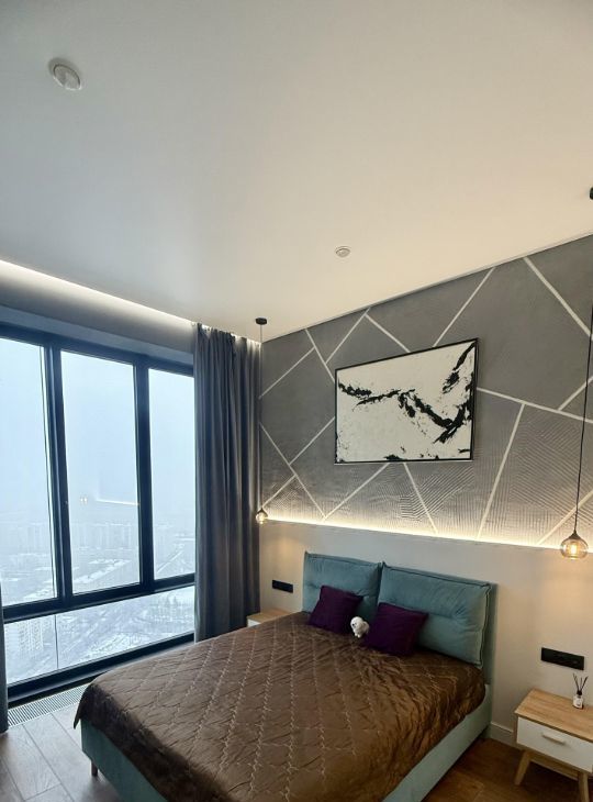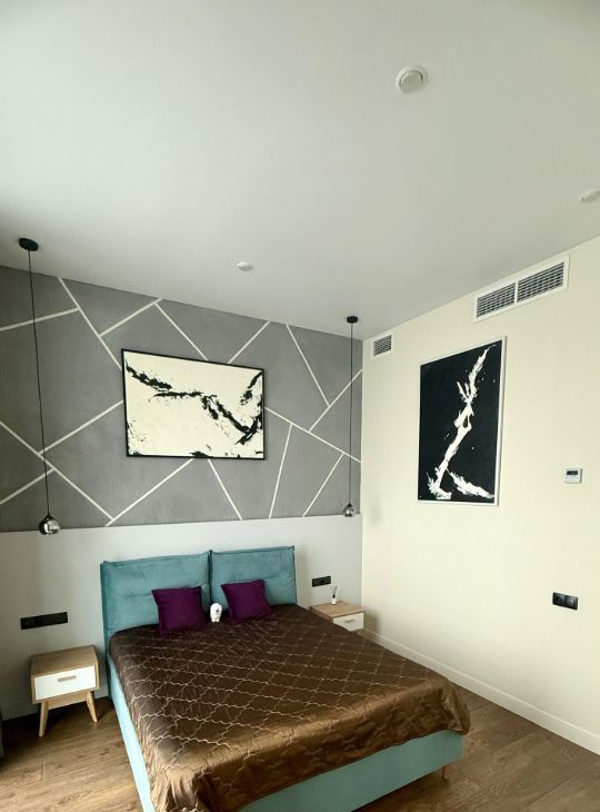 В квартире две спальни, один санузел гостевой, второй совмещенный. Мебель, техника, тв, интернет. Квартира с дизайнерским ремонтом.