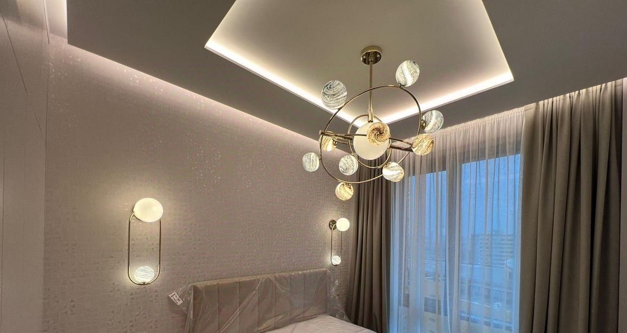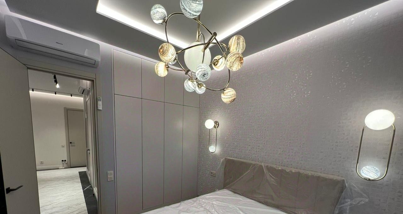 - в спальнях встроенные системы хранения, кровати с ортопедическим основанием, тумбы, настольные лампы с каменным основанием.