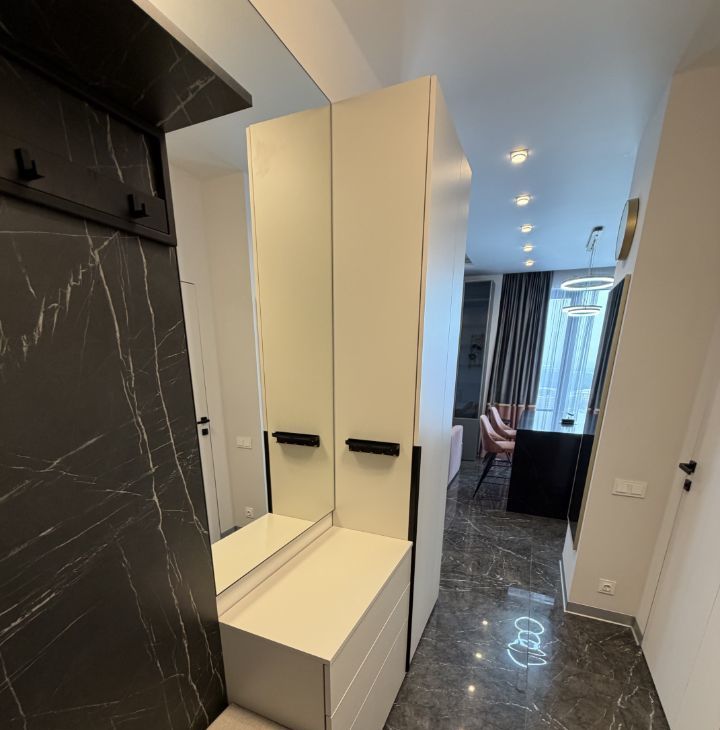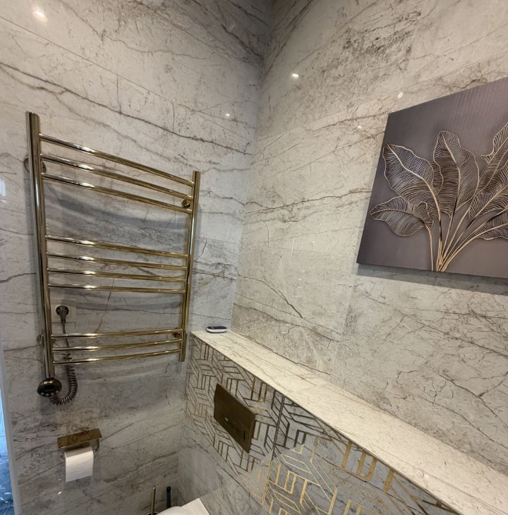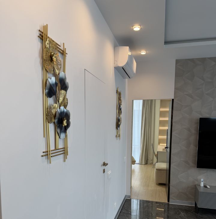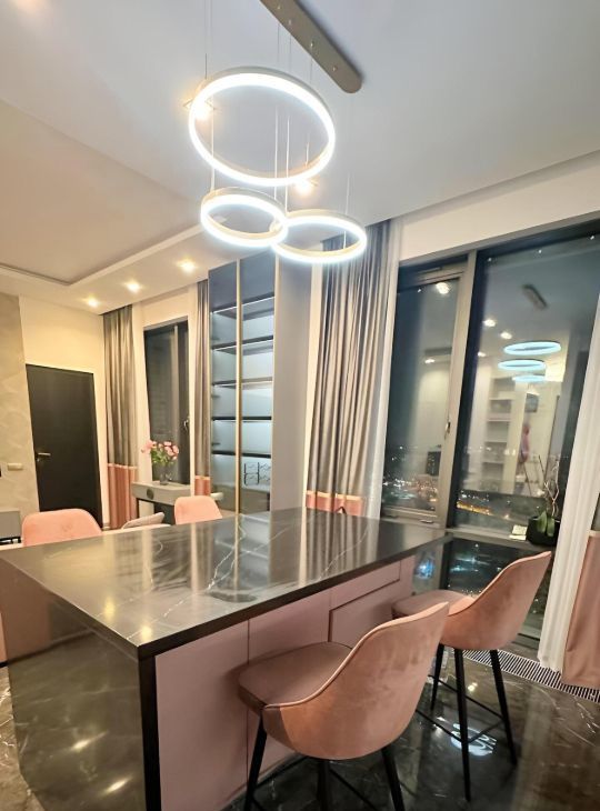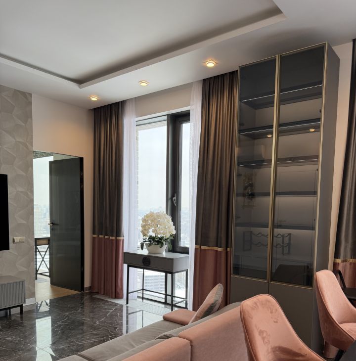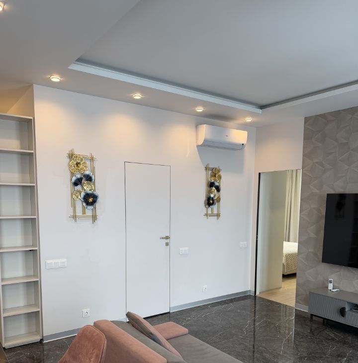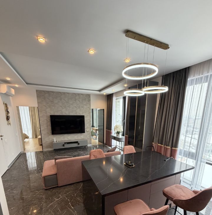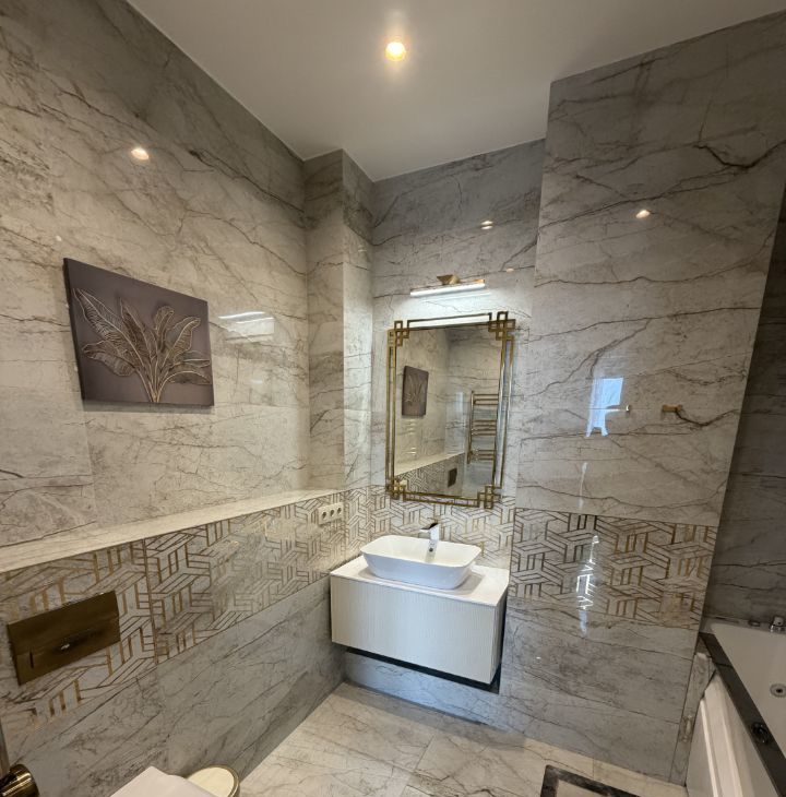 Внутри квартиры выполнен достаточно свежий дизайнерский ремонт, который сочетает в себе стиль и функциональность. В квартире есть всё необходимое для комфортного проживания и даже больше: новые автоматические шторы в спальной комнате,современная мебель на кухне,встроенная кофе машина и винный шкаф,во всех комнатах кондиционеры для поддержания комфортной температуры, а также полный набор бытовой техники, включая холодильник, посудомоечную и стиральную машины и телевизоры. Ванные комнаты оснащены гидромассажной ванной(джакузи) и душевой кабиной, что позволяет выбрать наиболее удобный вариант.