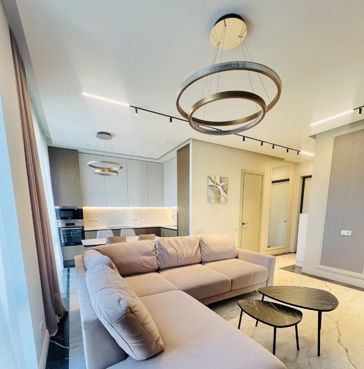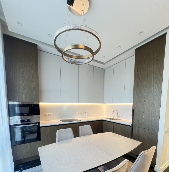 В квартире выполнена качественная отделка, дизайнерский ремонт, современная мебель и бытовая техника.