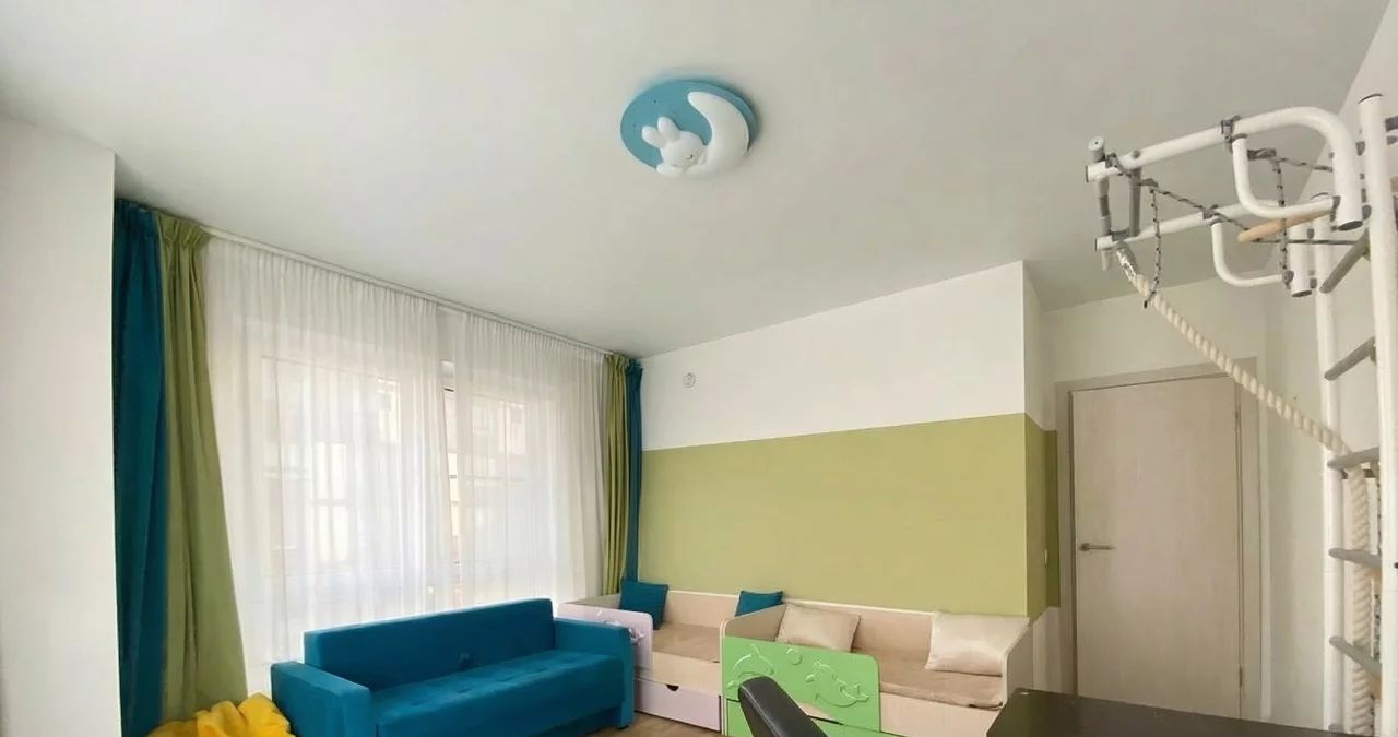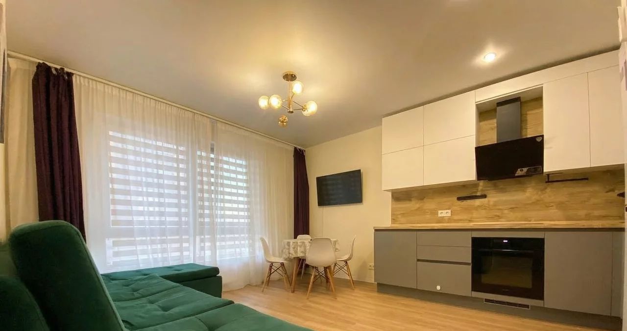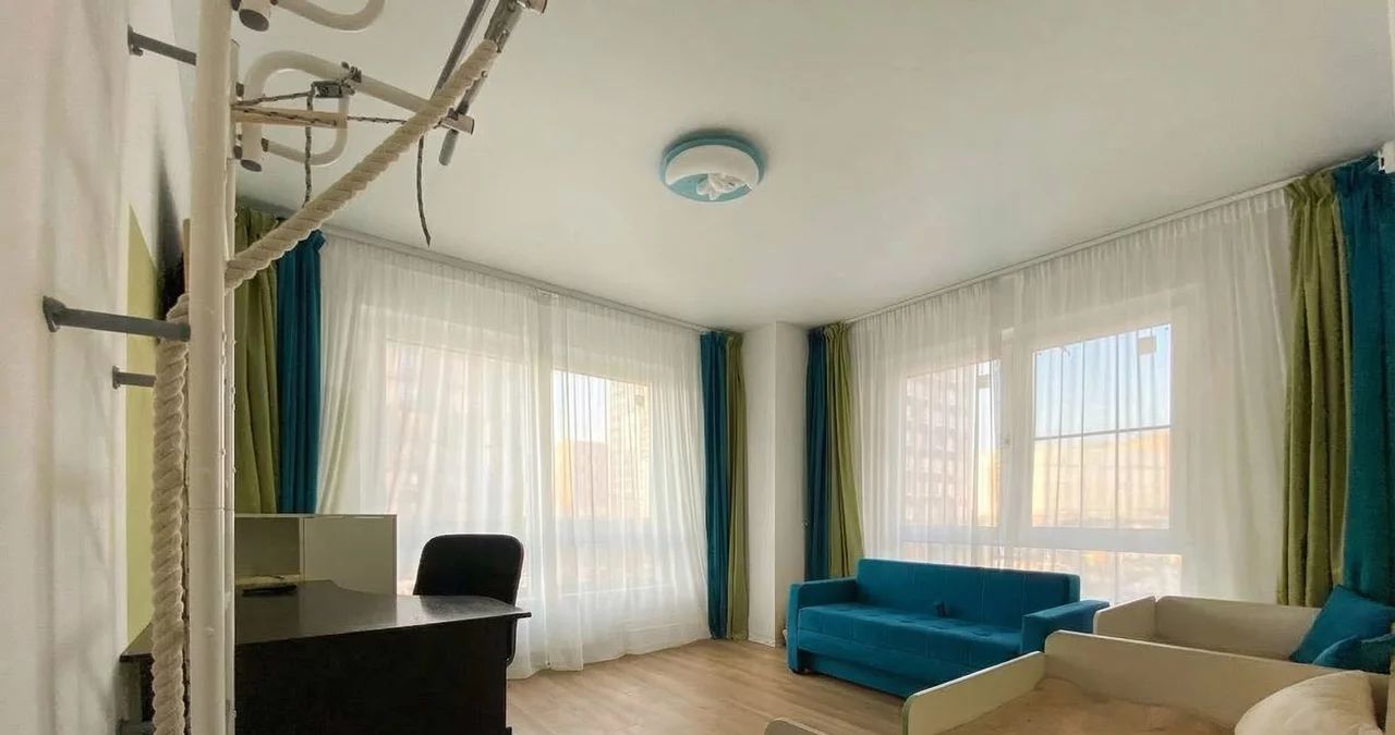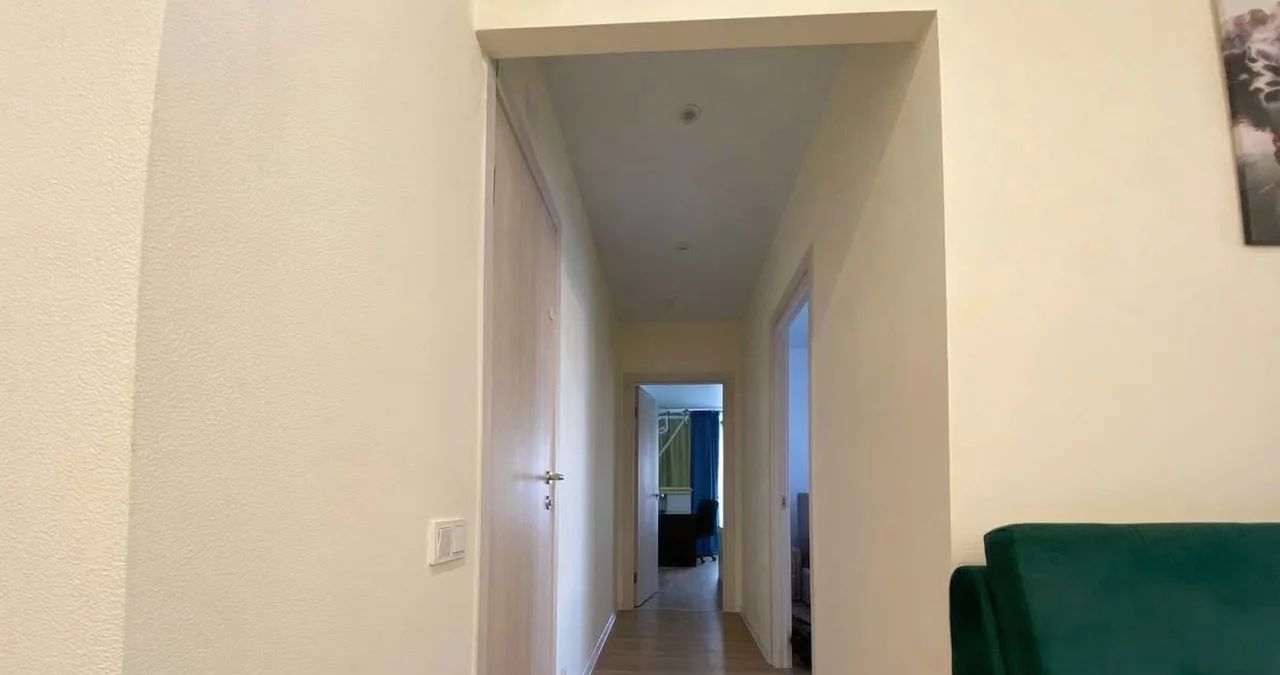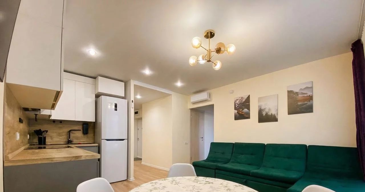 Квартира в хорошем состоянии, с нейтральной современной отделкой, полностью готова для комфортного проживания. Предусмотрены полноценные зоны отдыха, рабочее место, много естественного света, организованы системы хранения. В кухне-гостиной установлены встроенная кухня, варочная панель, духовой шкаф, холодильник, обеденная группа, мягкая мебель; в ванной — стиральная машина. Также есть кондиционер.