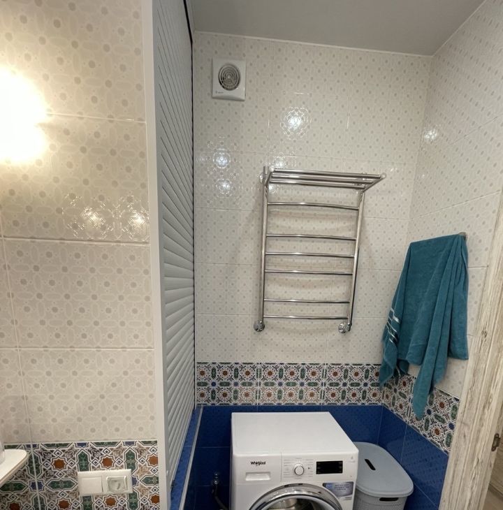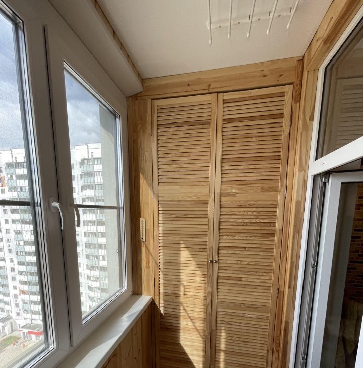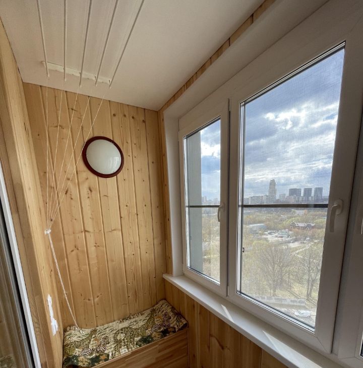 В ванной комнате выполнен качественный ремонт. Лоджия застеклена и отделана деревом, оснащена системой теплого пола, создавая уютное пространство для отдыха.