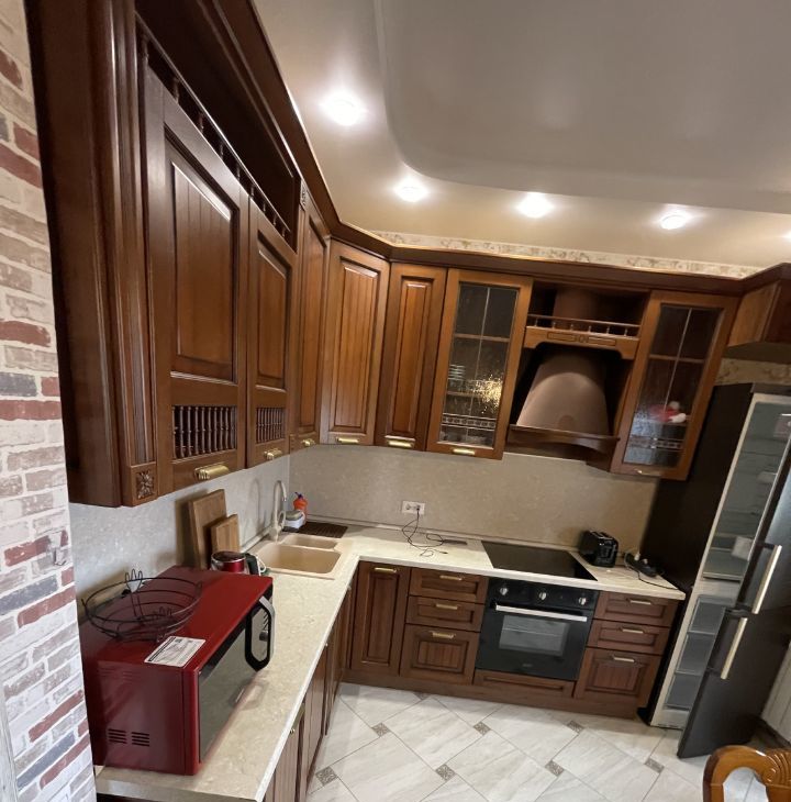 Квартира реализуется со встроенной мебелью и бытовой техникой, включая варочную панель, духовой шкаф, двухкамерный холодильник Bosch, посудомоечную машину, вытяжку, сплит-систему на кухне и вертикальный пылесос Dyson. Указанные предметы входят в стоимость объекта. В квартире выполнен качественный ремонт, не требующий дополнительных вложений; вся мебель изготовлена по индивидуальному проекту.