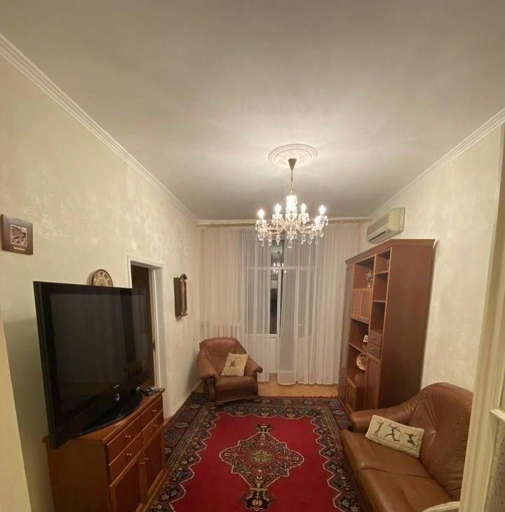 Квартира расположена на 4 Этаже 10 Этажного кирпичного дома. Сталинский дом, высокие потолки. хорошая шумо и тепло изоляция. Квартира состоит из 2х изолированных спален, проходной гостиной с удобной мягкой зоной, большим телевизором и кондиционером, просторным холлом и раздельным санузлом.