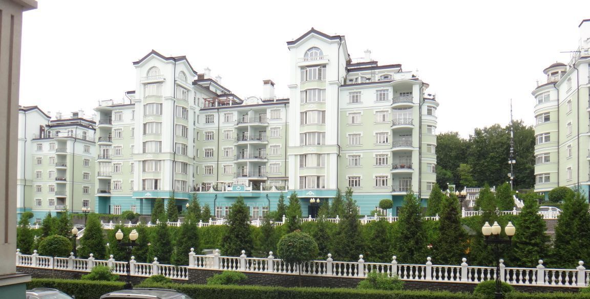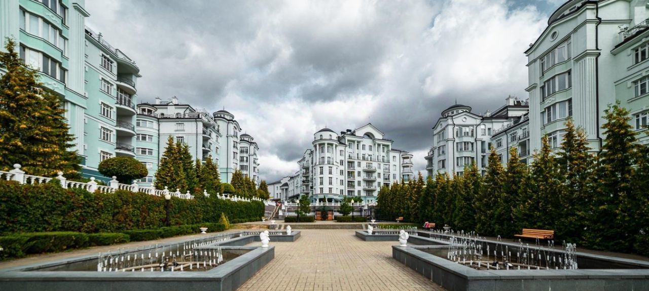 На территории есть частный детский сад, бассейн, фитнес, продуктовый магазин, площадки для тенисса, фонтан, тенистые аллеи.