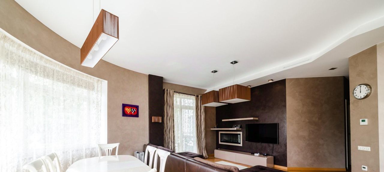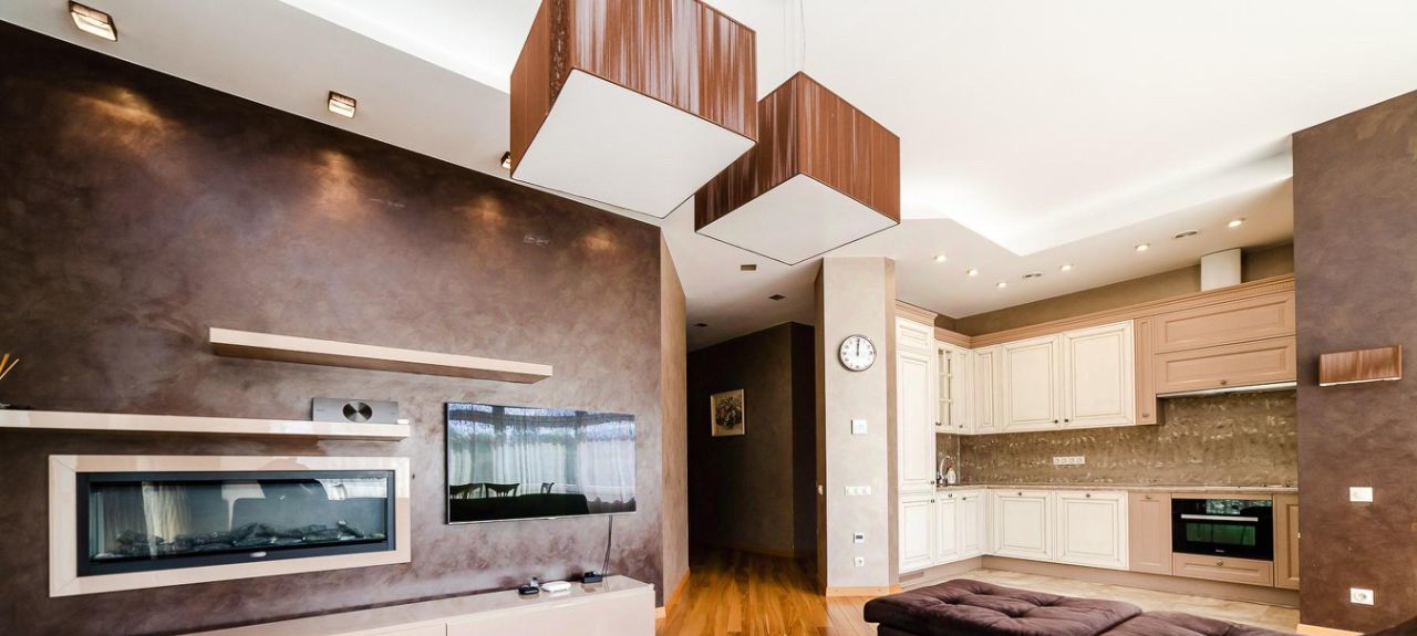 Планировка: просторная кухня столовая гостиная с камином и выходом на балкон, гостевой санузел, вместительная гардеробная с сейфом, мастер спальня с санузлом и выходом на террасу, детская комната, постирочная.