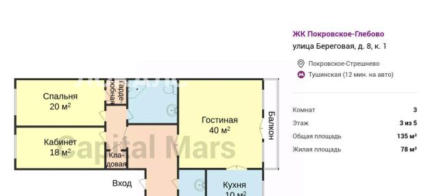 3-к кв. Москва Береговая ул., 8К1 (135.0 м²)