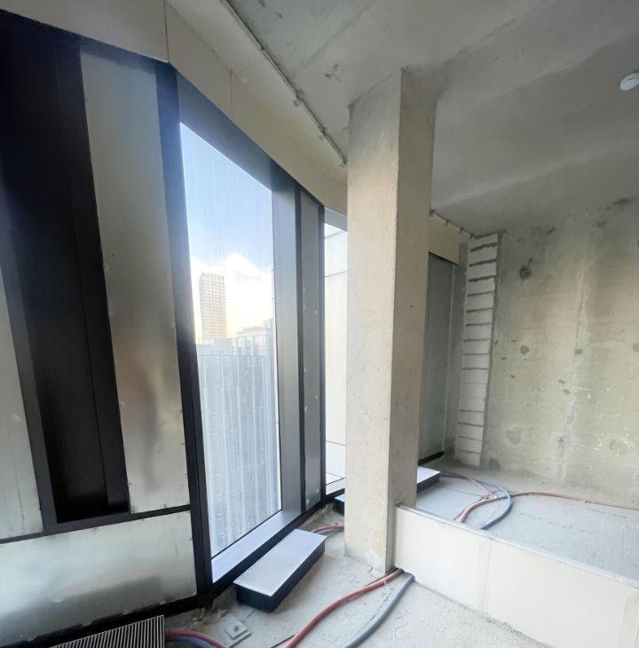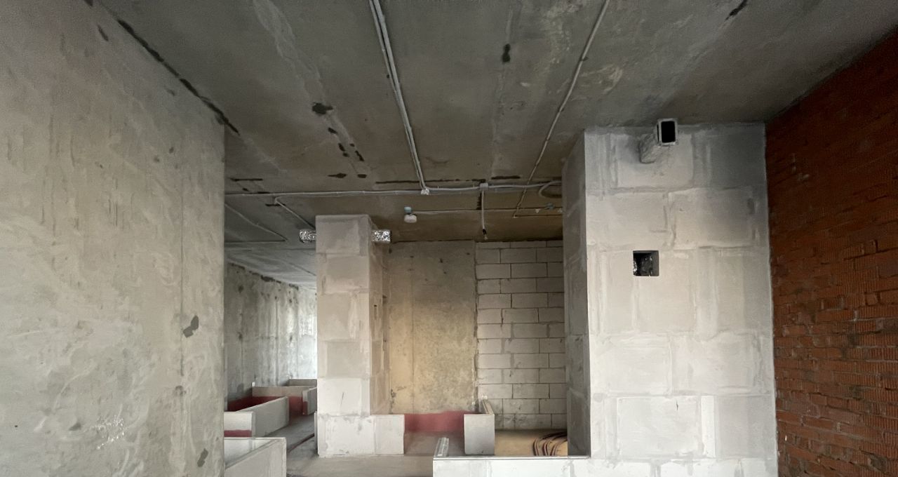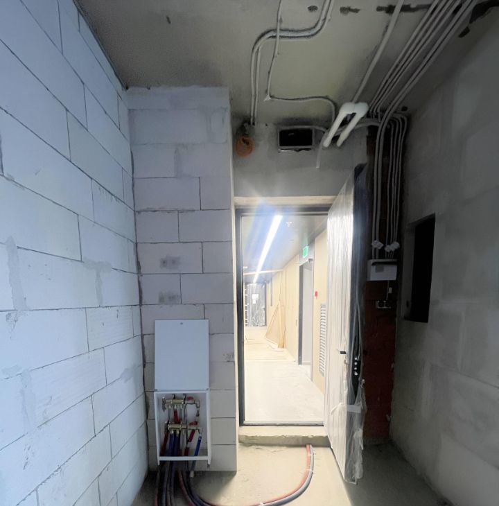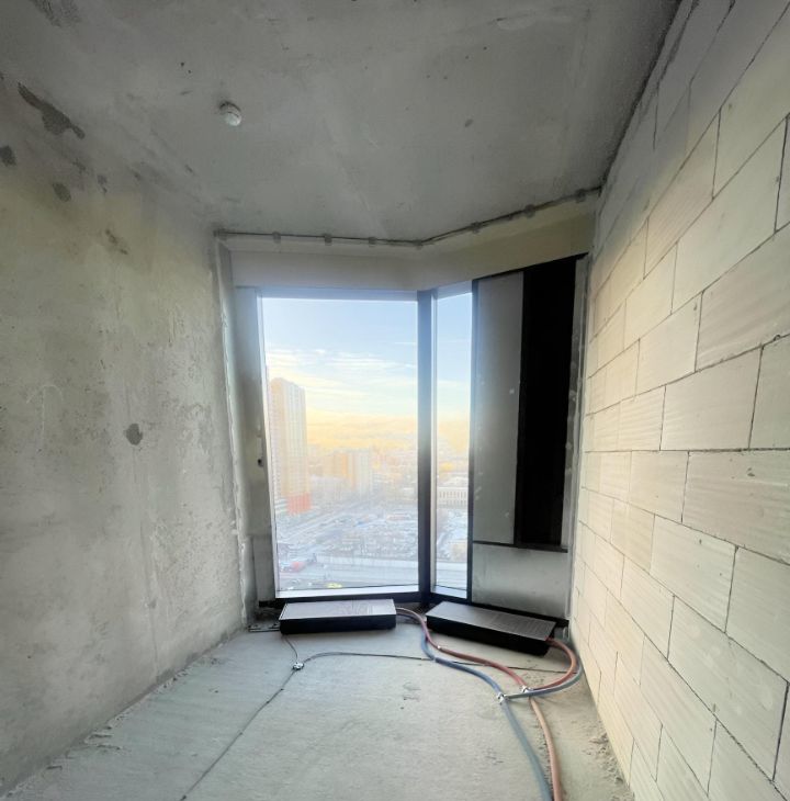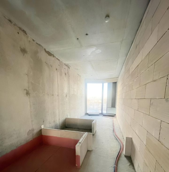 Общая площадь 104,9м2. Высота потолков 3,2м, в чистоте 3м. Жилая площадь по БТИ застройщика 36м2. 6 мокрых точек (4 санузла, построчная и кухня). Кухня-столовая 28м2.
