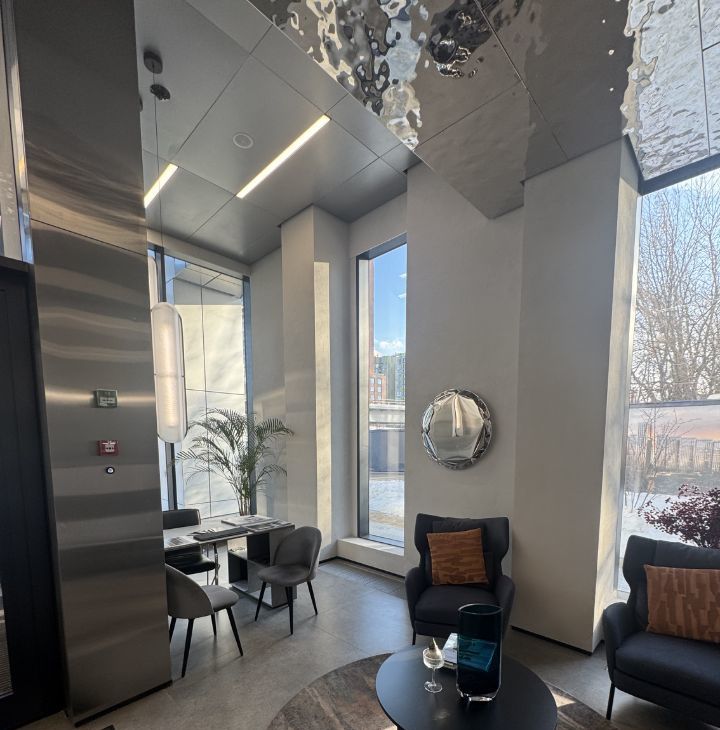 На 1 этаже подъезда зона ожидания - комфортные кресла, комната для хранения детских колясок, самокатов и велосипедов. Лапомойка. Гостевой санузел.