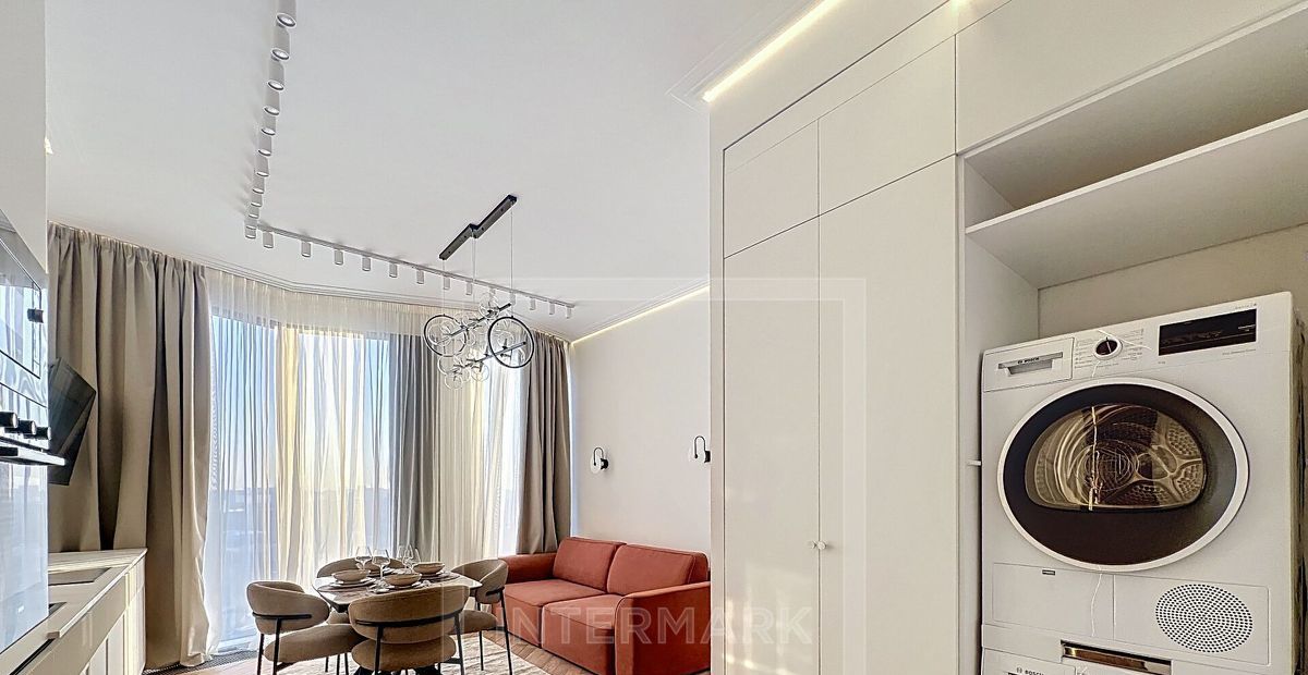 В квартире: С мебелью, М/место в подземном паркинге, Посудомоечная машина, Стиральная машина, Сушильная машина, Бойлер, Душевая кабина, Спутниковое/кабельное телевидение, Кондиционер, Видеонаблюдение, Охрана, Интернет, Можно с детьми, Можно с животными, Европланировка, Ванна, Интерьер в современном стиле, Консьерж, Кондиционер, Гардеробная комната, Лифт, Кухонная мебель, Окна на улицу, Окна во двор