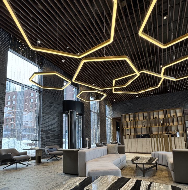 Для жителей: консьерж-служба, кафе с входом из лобби (можно спуститься в домашней одежде), винотека с дегустациями, коворкинг, камин;