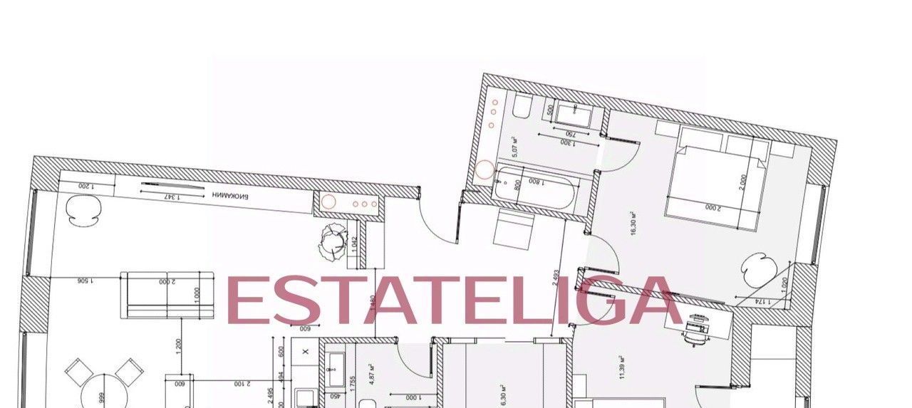 Функциональная планировка квартиры, разработанная по индивидуальному дизайн-проекту: просторная кухня-гостиная, удобная мастер-спальня, уютная комната с выходом на лоджию, можно использовать как детскую комнату или кабинет, два санузла - один с ванной, другой с душем, просторный холл с гардеробом и постирочной зоной.