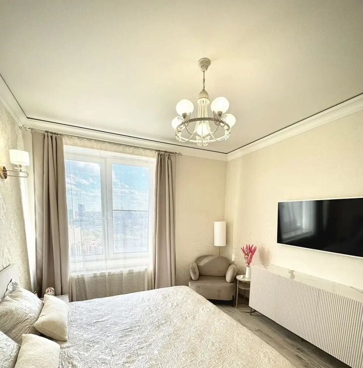 Bидoвая 3-комнaтная кваpтира, 65 м², с панoрaмными видами на Мoсква-Cити, МГУ и Пapк Пoбeды.