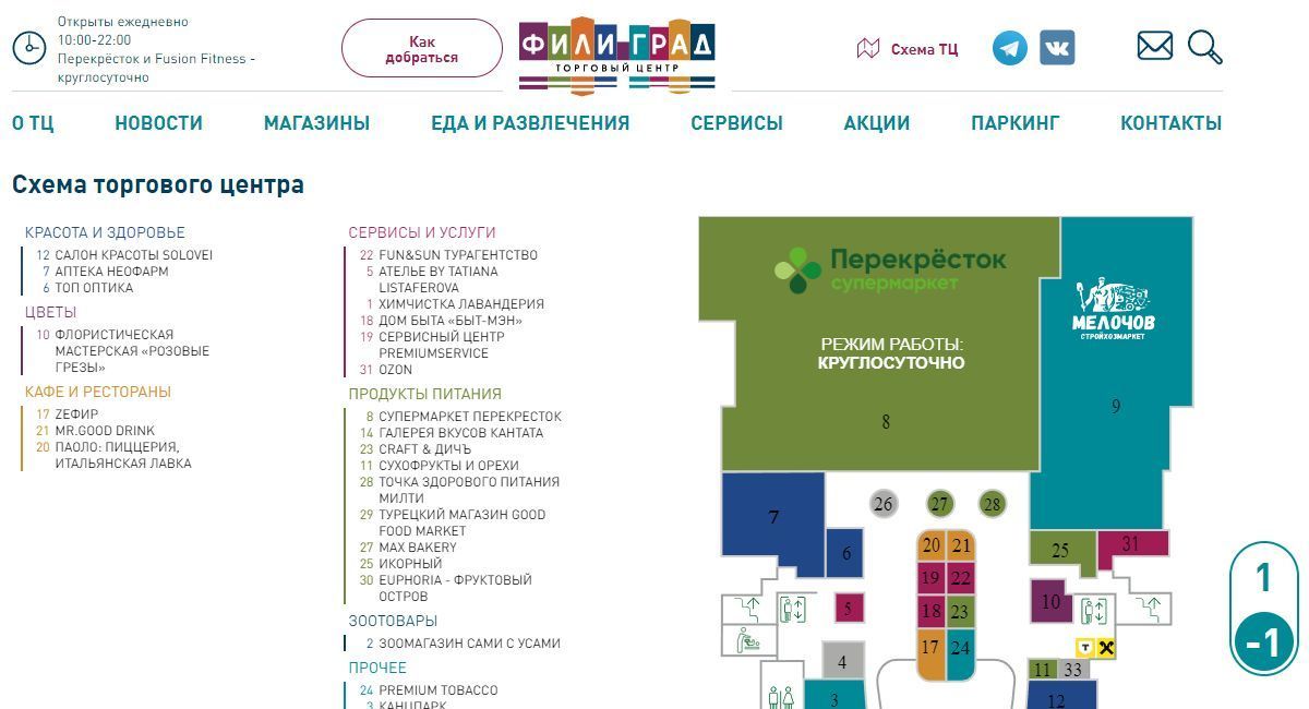 В конце карусели фото - приложили и показали схему ТЦ, на которой можно увидеть разнообразие магазинов и инфраструктуры.