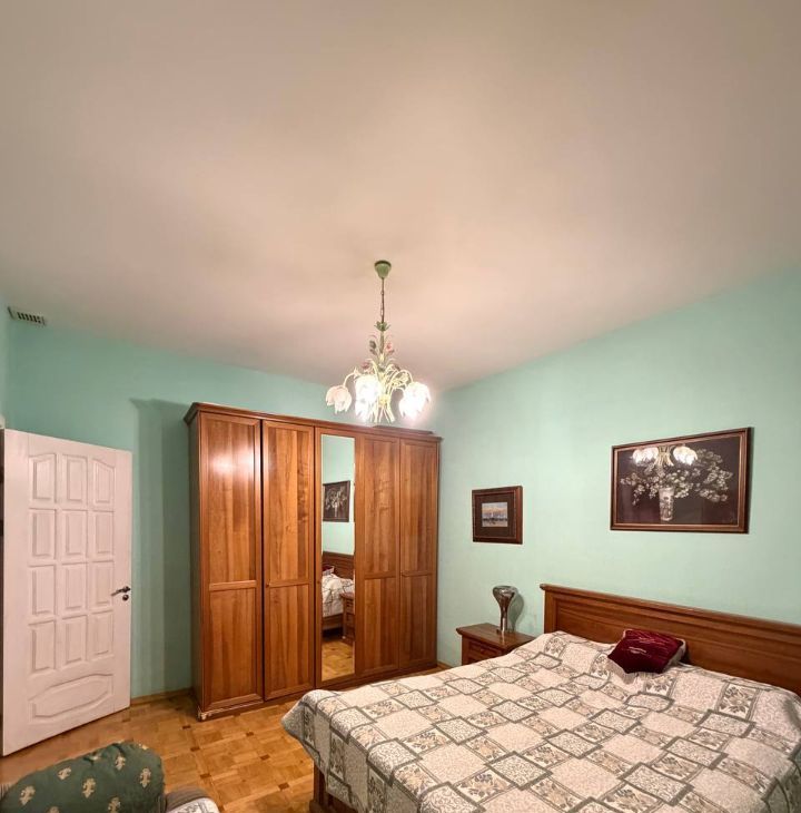 Просторная квартира с высокими потолками в старинном сталинском доме. Дом был построен в период с 1943 по 1954 год, имеет длинную историю и является ярким образцом сталинской архитектуры с богатым декором фасадов. На территории дома, огороженной 4 шлагбаумами есть множество свободных парковочных мест, 3 детские площадки, футбольная/хоккейная площадка, продуктовый магазин, магазин "Ароматный мир"(находится соседнем доме в двух минутах ходьбы), ресторан, кофейня, ателье, также прямо перед домом, на набережной, есть умная авто-мойка. Дом находится в пешей доступности к Киевскому вокзалу (7 минут пешком), одноименной станции метро "Киевская" и торговому центру "Европейский". В 10 минутах пешком находится Воробьевская набережная и район Мосфильм. В 5 минутах езды на машине или 20 минутах пешком, находится парк "Лужники", Новодевичий монастырь, улица Плющиха, старый и новый Арбат, и еще множество исторических / культурных объектов. На самой набережной находится пристань для прогулочных кораблей и несколько мостов соединяющих район Дорогомилово и Хамовники. В 2 минутах езды на машине находится съезд на Третье транспортное кольцо, в 5 минутах езды - съезд на Садовое кольцо. Район хорошо озеленён. В квартире сделан евро / дизайнерский ремонт, имеются все удобства: холодильник, новые кондиционеры и батареи установлены в каждой комнате, гигиенический душ, большой душ/ванна, ванна для животных с гидроподъемником (по желанию можно убрать), бойлер, датчики протечки воды установлены под каждой раковиной, ванной, батареей и кондиционером, датчики возгорания, раковина на кухне оснащена шредером, установлен дополнительный кран с фильтром для воды, духовка/микроволновка, газовая плита с 5 конфорками, Wi-Fi, телевизоры в спальнях, на кухне и в одной из спален установлена светодиодная подсветка.