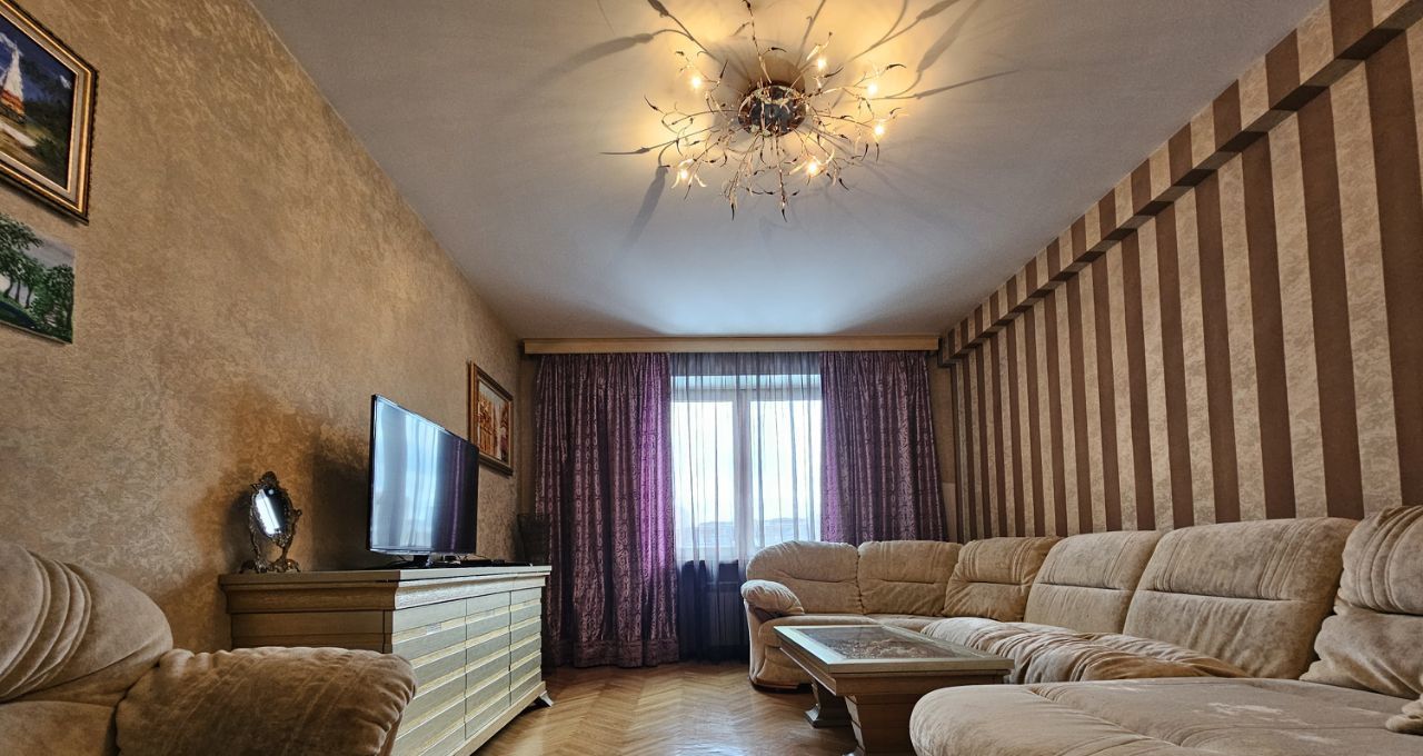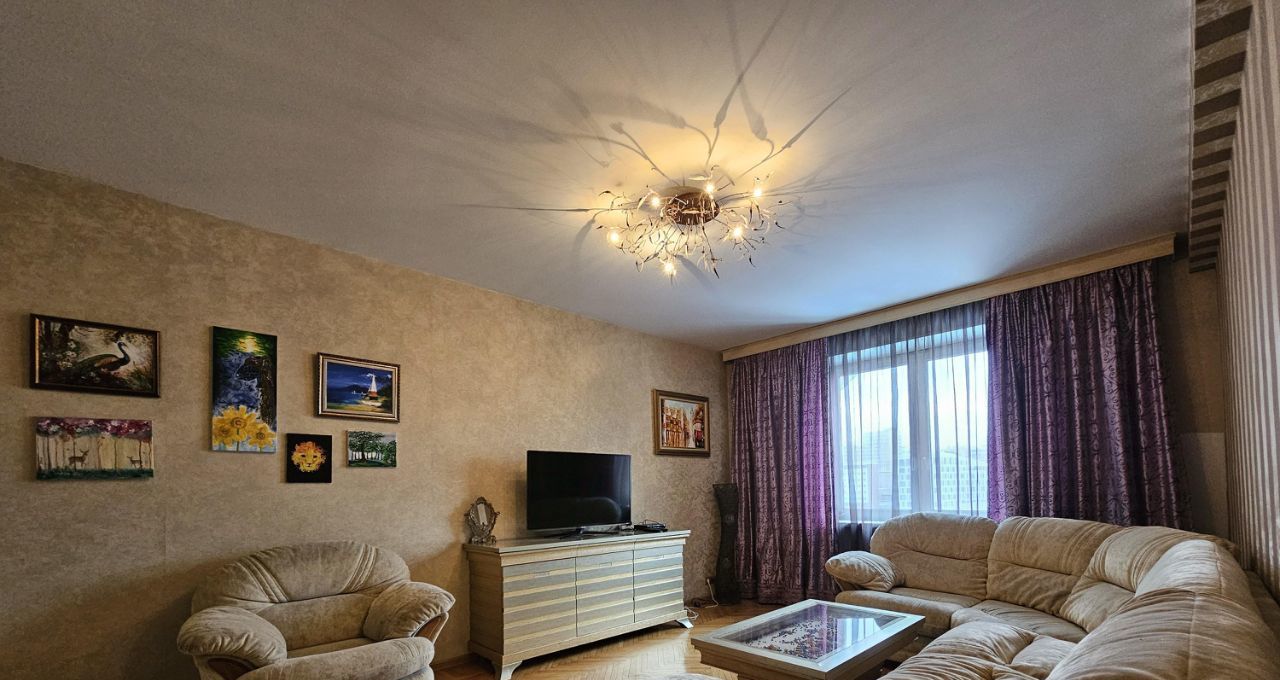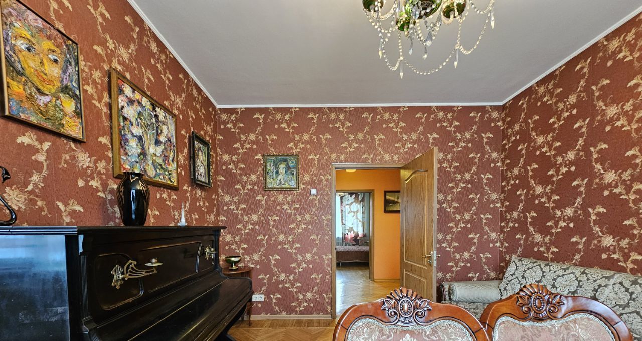 Предлагается в аренду просторная трехкомнатная квартира в пешей доступности от метро Киевская. Общая площадь составляет 104 кв. м, жилая площадь — 72 кв. м, а кухня — 13 кв. м. Квартира находится на 6 этаже 6-этажного дома, построенного в 1940 году. Высота потолков — 3,1 метра, что создает ощущение простора.