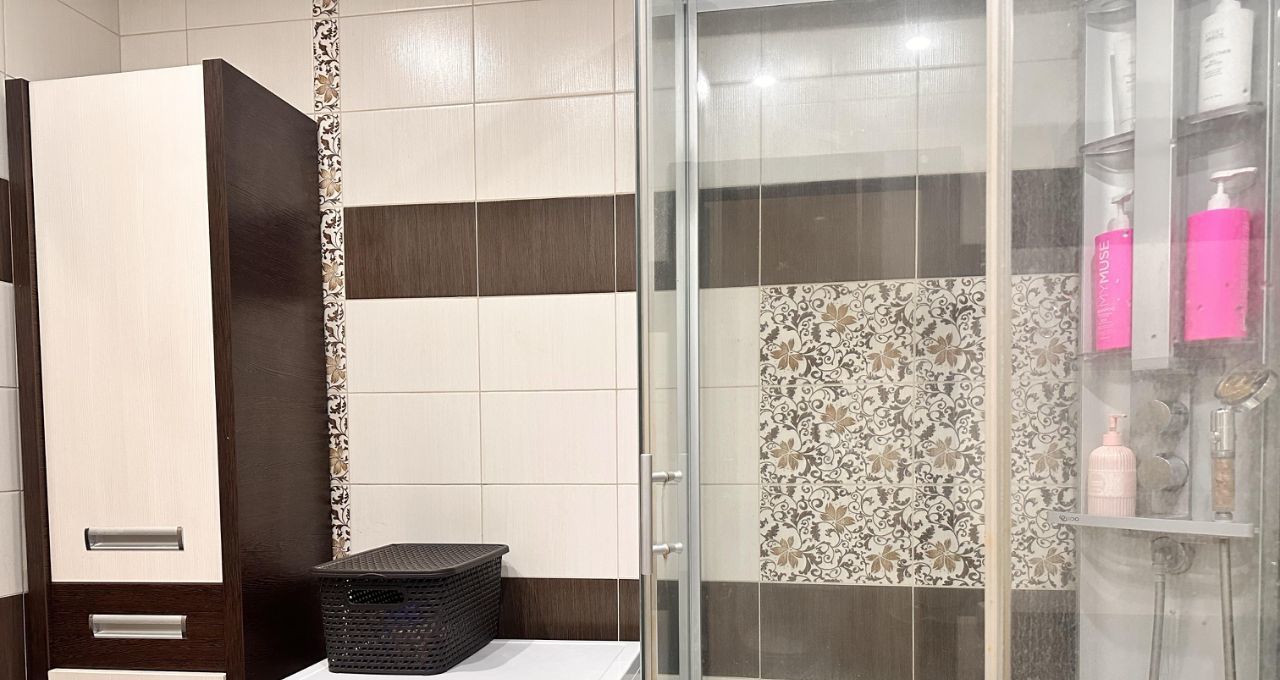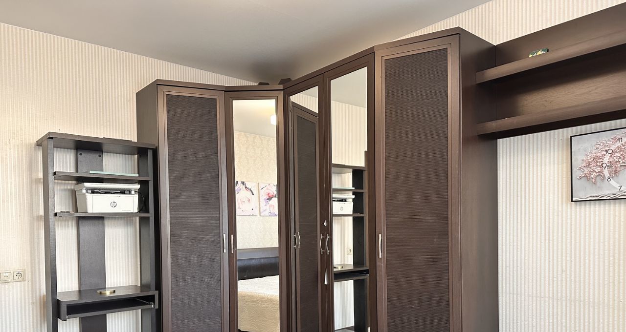 В квартире узаконенная перепланировка с гардеробной и совместной душевой комнатой и санузлом .
