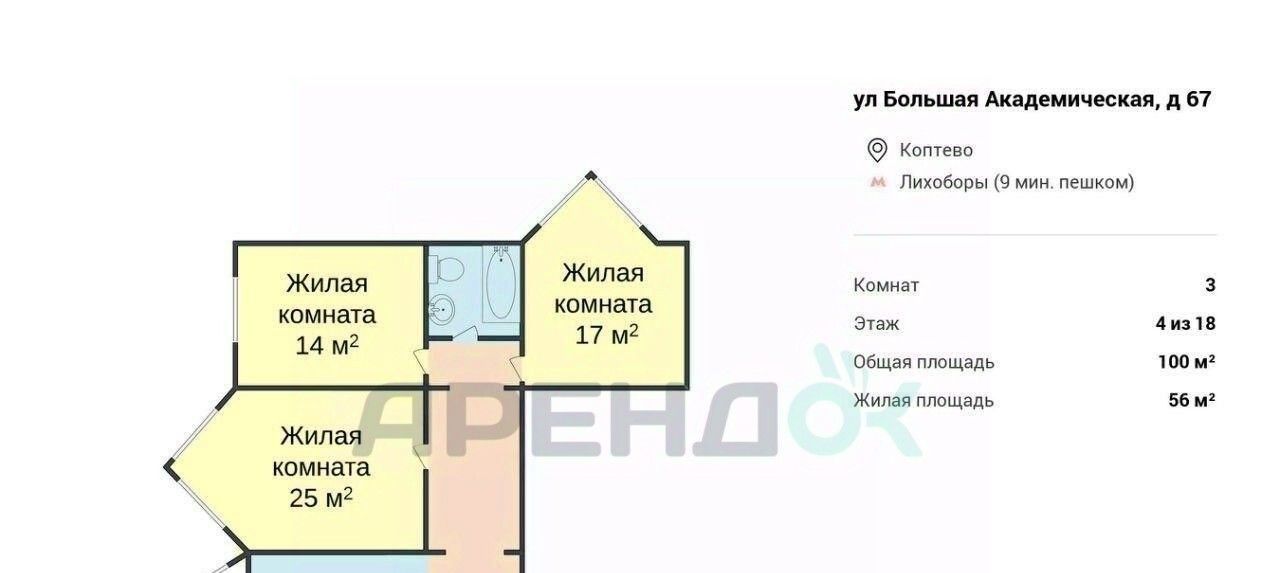 3-к кв. Москва Большая Академическая ул., 67 (100.0 м²)