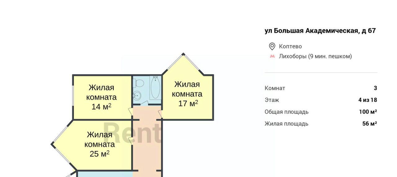 3-к кв. Москва Большая Академическая ул., 67 (100.0 м²)