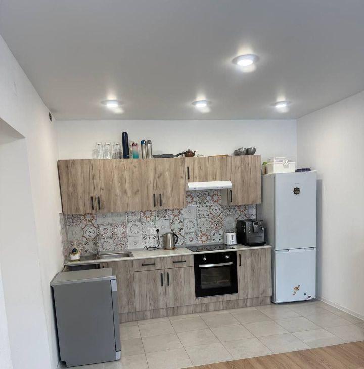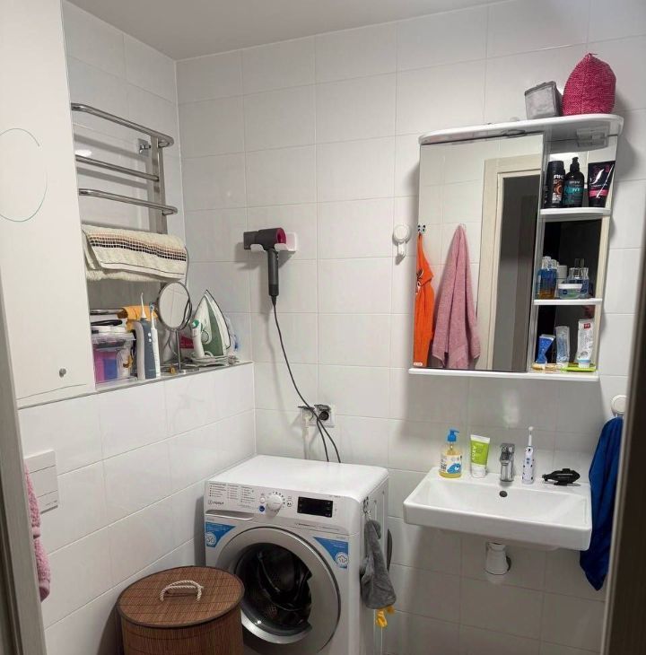 В квартире есть всё необходимое для комфортного проживания: современная мебель на кухне и в комнате, кондиционер, холодильник, телевизор и стиральная машина. Планировка включает в себя один совмещённый и один отдельный санузел, что удобно для семьи. В ванной комнате установлена ванна.