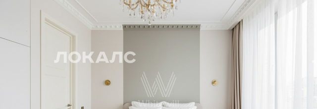 Квартира после ремонта, с 2 спальнями площадью 124 м² на 8 этаже дома "Большая Бронная, 19" на Патриарших прудах. Интерьер оформлен в современном стиле с преобладанием светлой цветовой гаммы. Стильная мебель, текстиль спокойных оттенков и эффектные люстры делают пространство уютным и гармоничным. Комнаты оснащены всем необходимым для вашего комфортного проживания.