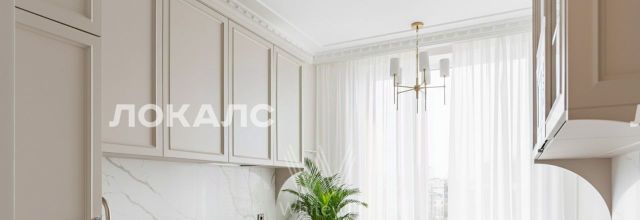 В гостиной спланировали обеденную зону и лаунж с мягким диваном, кухня закрытого плана укомплектована гарнитуром молочного оттенка и техникой, в большой спальне встроены вместительные шкафы для одежды, а вторую комнату можно использовать как детскую или кабинет. Санузел раздельный с ванной. В квартире предусмотрены 2 лоджии, откуда открываются виды на город. Машину можно оставить во дворе. Возможна аренда с домашними животными.