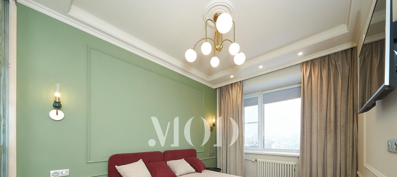 Интерьер выполнен в современном стиле: декоративные панели на стенах, дизайнерское освещение, встроенные системы хранения и качественные материалы отделки.